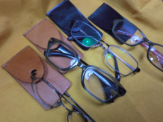 来年のイベントに合わせてすればいいと思い完成までさせなくて 置いておいたのですが、 突然の一宮の『 杜の宮市 』のかわりの『 まちの宮市 』のお話をいただき あわてていくつかの作品をお客様に見て頂ける状態に仕上げています。 これはそれの一部です。 革で作ったメガネホルダーです。 以前にも男性用と女性用を作りましたが、以前のものはコンパクトに作ることを 念頭に置いたので服に取り付けるのが少し面倒さを感じていました。 今回完成は男性用だけですが、革の部分をワイシャツの胸ポケットに 差し込むだけという簡単な方法に変えています。 いつもホルダーは胸ポケットに付けたままにしておいてもそれほど 邪魔にならず眼鏡をはずした時にはワンタッチでそこに差し込めば 簡単にホールドしたままの状態を保てるようになっています。