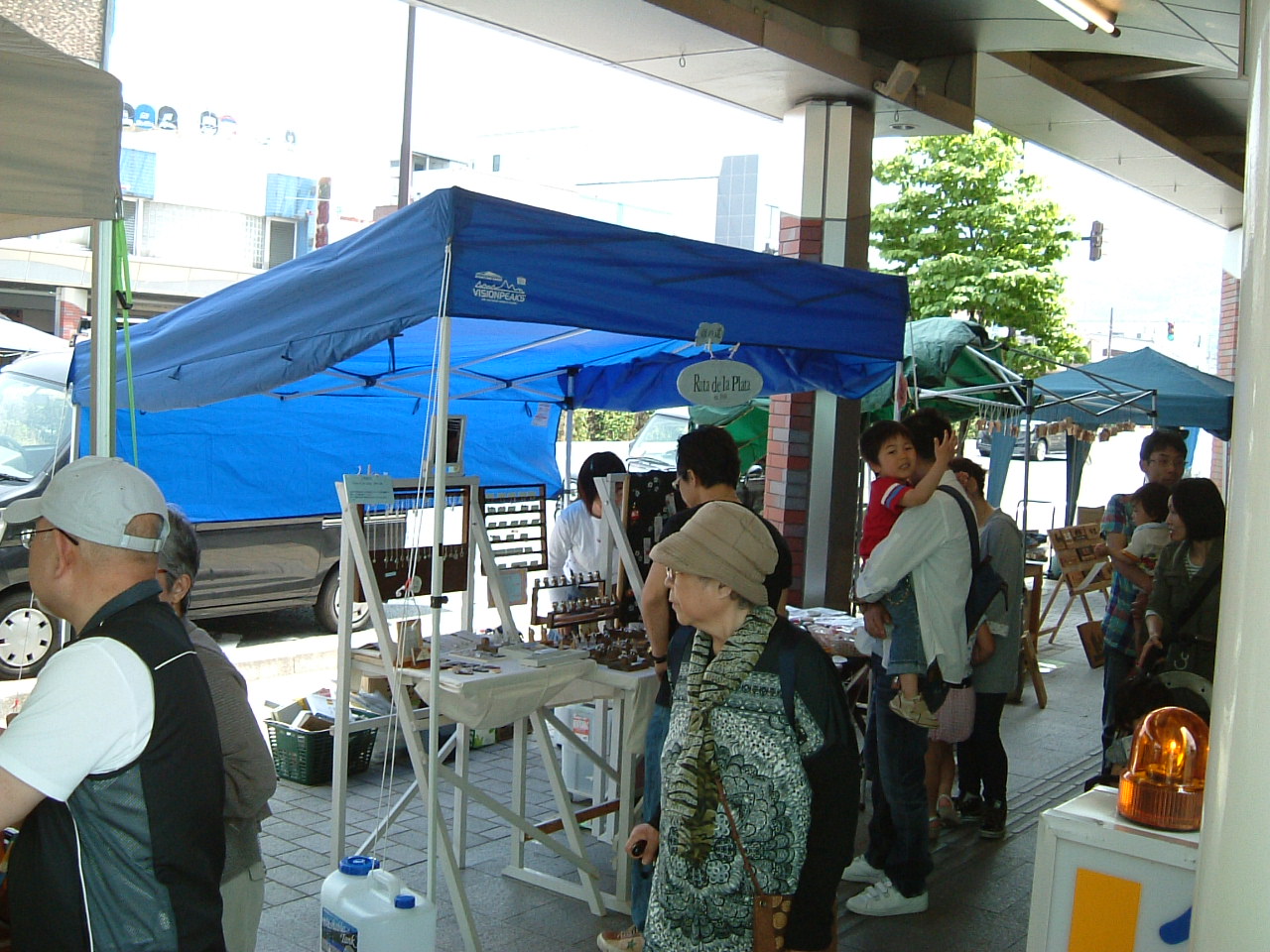 の報告を1日たった23日の夜に書いています。 心配していた天候は、曇りがちではありましたが、一日何とかもってくれました。 温度も少し汗ばむくらいで、おかげさまでたくさんのお客様に来ていただくことが 出来ました。 22日は朝から雨模様で店の準備を終えてさあ、これからと言うときに前線の通過と言うことで ひどい風と雨にタープが飛びそうな状態になって、二人で小一時間タープを必死に押さえていました。 午後からは雨もやみ人出のほうも多くなって、ヤットいつものペースになりました。 今回の敦賀の開催場所は駅前の商店街に道路を挟み両側に80ぐらいの店が出店しました。 駅前の広場の風景、次は商店街に並んだ各ブースの様子、そして町の所々には 松本零士の宇宙船艦ヤマトや銀河鉄道999からのブロンズ像が置かれていました。 銀の道のブースはいつものこんな感じ、大きい3m×2mのタープを使いましたが、 これが風にすごく弱くて大変苦労しました。 いつの間にか恒例のようになってきたお隣さんシリーズです。 私達の左は若いご夫婦でいらしていた、木製のかざぐるまを制作されている 久保指物店三代目さん 本業は店名のとおり指物職人さん。 大変良く回るかざぐるまで、非常に精密に作ってありました。また球状のものもありました。 また展示台もお仕事柄システマチックに作られ、かつ綺麗に仕上げられていました。 右側には岩手県から参加された 木と書と器の たけぞうの武田孝一さん 本来の仕事は漆器と伺いました。 画像にあるWOOD JAPANのJPANは漆器のことだとこの文を書きながらあらためて気づきました。 今回は表札とTシャツ型のストラップを展示されていました。 また久しぶり、(去年の鳥羽クラフト展以来)にお会いしたのが 大阪で 器屋工房と陶芸倶楽部 独楽 をされている 小松原御夫妻 大変明るい方で話しているだけでなぜか楽しくなって来てしまいます。 またGIFUクラフトフェアーでお会いできるのを楽しみにしています。 そしてもう一人 つう工房の田井地ご夫妻、 初めてお会いするのですが、いつもウェブ上の全国クラフト展一覧でお世話になっていることから、 あつかましくご挨拶と勝手に押しかけてしまいました。 大変気さくな方でつい話し込んでご迷惑だったのではと少し反省しています。 で、例の鯖の浜焼きですが もちろん食べました。 やっぱり本場で焼きたての味はまた格別でした。 ただ行く前に決めていた店は定休日だったため 別の店で食べました。 浜焼さばです。 誰にお土産かって、もちろん自分用です。 23日の夕食においしくいただきました。 最後に今回お世話になりましたスタッフの方達、本当にお疲れ様でした。 いろいろ決めの細かいことまでの気遣い本当にありがとうございました。 来年もぜひ参加させていただきます。 PR ● コメントフォーム |