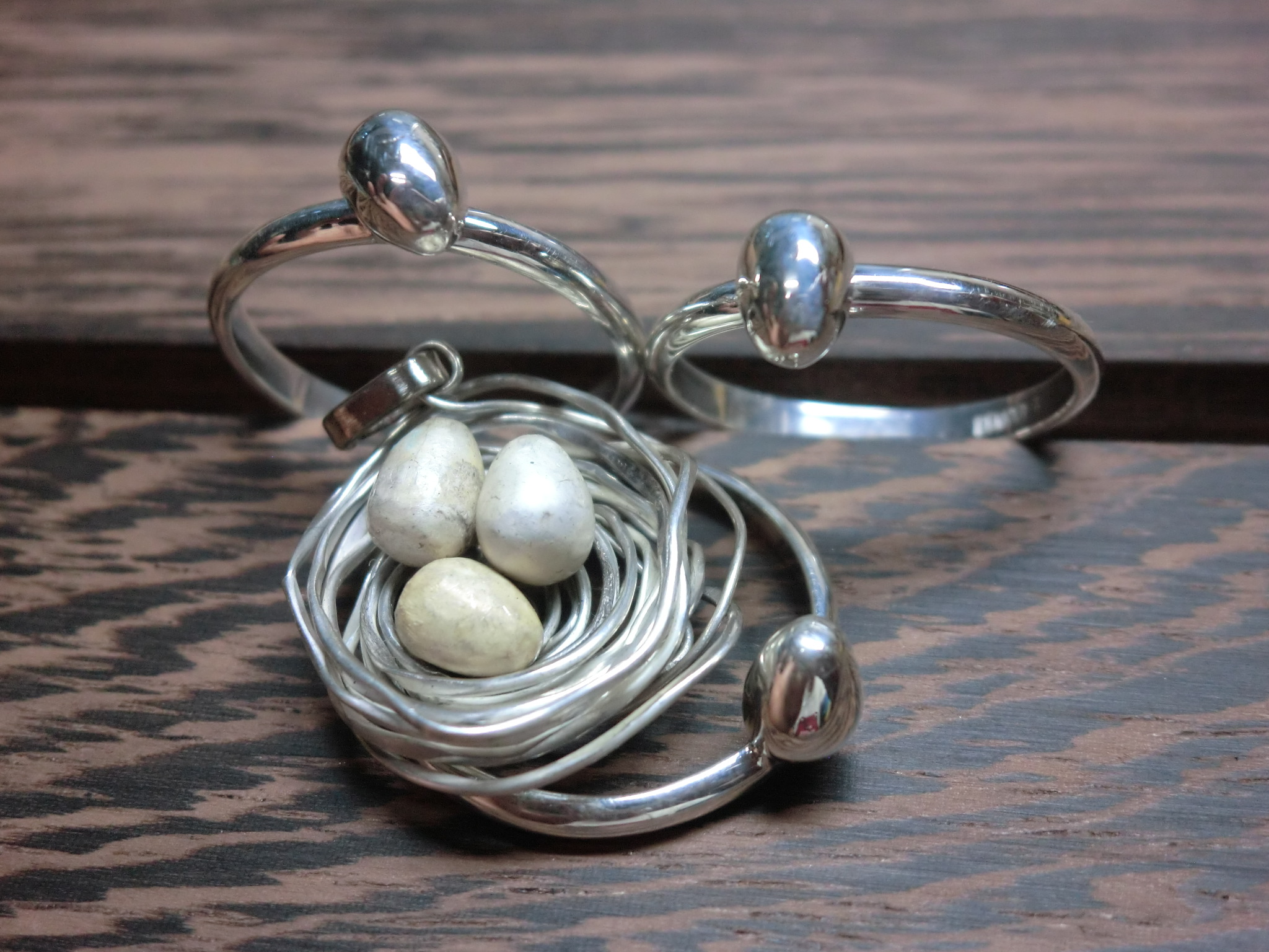 鳥の巣の中の卵のペンダントは写真を撮るため慌ててセットしただけで
