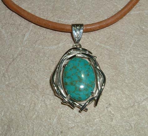 まったく能率が上がりません。 幸種市(しあわせだね*いち)に行ったり、うちの雑用を片付けたり、 でも少しはがんばりました。 来年は銀と革のコラボ作品を多く作ろうと考えていたので、手始めに 革のネックに付ける、ペンダントを作ってみました。 女性が付けられるように、優しい感じを表現してみました。 左側は 35mm×25mm のサイズのルチルクォーツを使って シンプルな線でまとめて、12ヵ所に小さな飾りをあしらってみました。 右側は 18mm×13mm のトルコ石で、柔らかいラインを描く 銀線を使った構成のなかで少し違うトルコ石の使い方が出来たかと 思っています。 PR