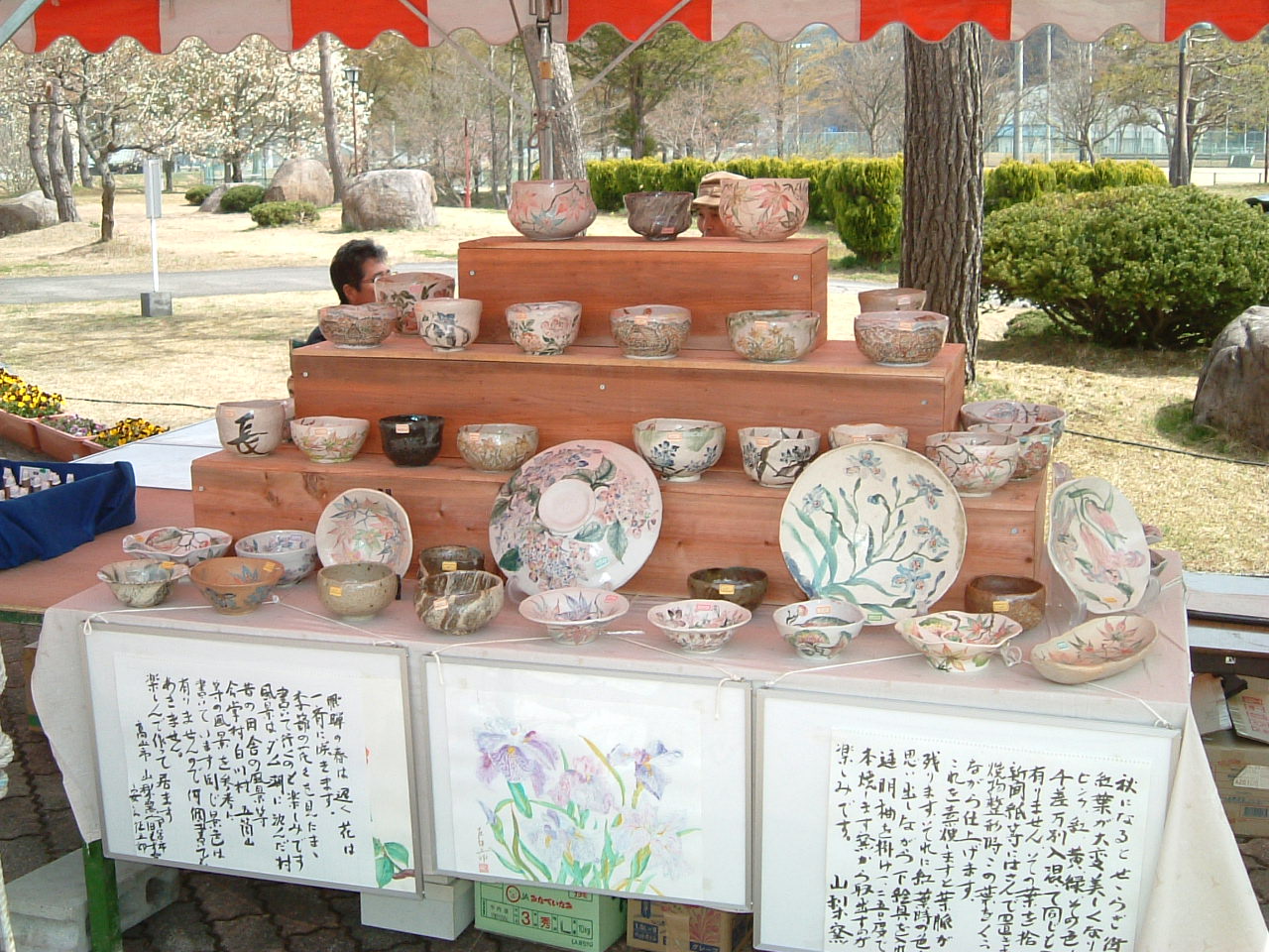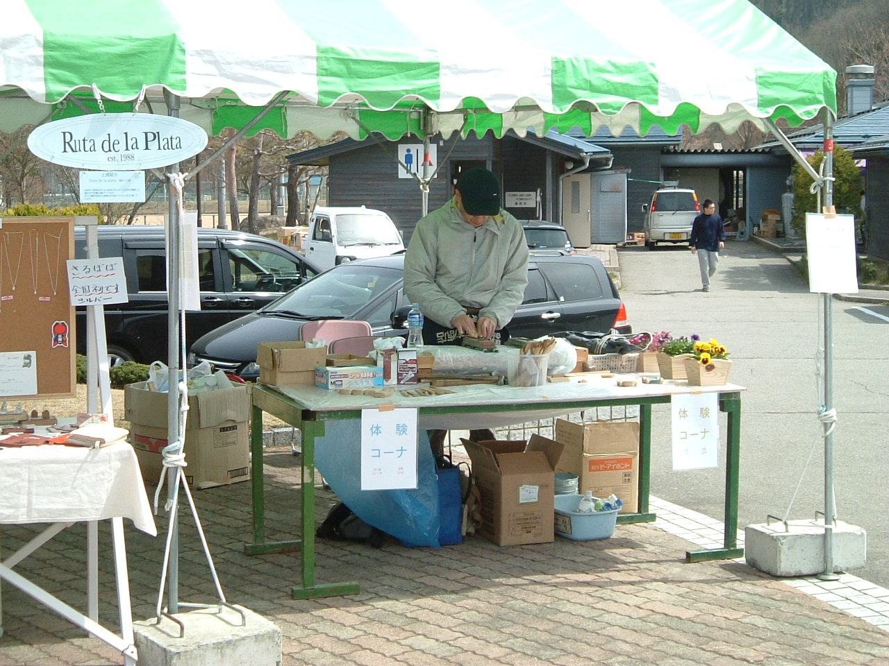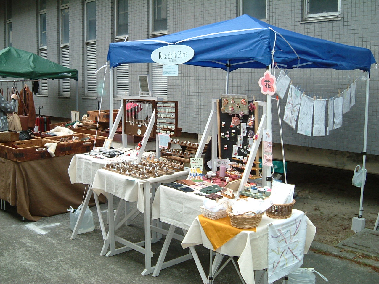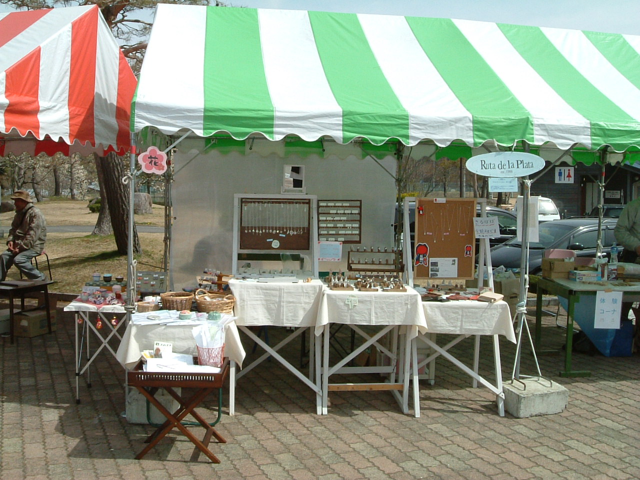 4月29日(金・祝)~30日(土) 4月29日天気予報どおり少し寒いけれど雨の心配はなさそう。 5時00分に自宅を出て高速道路で一路常滑に。 6時30分にINAXMUSEUMの駐車場に到着し、7時の入場時間まで待機。 7時までには他の参加者も次々とやってきました。 入場後本部でブースの位置を確認しタープの設営、展示台の組み立て、作品の陳列と、 あわただしく動き回って 10時の会場時間には少し余裕を持って準備完了。 を掲げました。 2m×2mのタープの下に展示完了。 10時になるともうかなりのお客様が どんどん入ってきました。 お客様の流れはこんな感じでした。 新しいリング用の駒です。 小牧での画像が小さくて見辛かった為、 今回は少し大きめにとってみました。 以外に展示しやすいことと、シリーズごとに 区分けして並べられるので、見やすくなった のではと自画自賛しています。 旧常滑高校の校舎の周りには下の画像のように100以上の作家さんのブースが並んでいました。 また象さんのこんなパフォーマンス、常滑の土を使ったねんど遊び、楽しみ学びやその他 体験教室など多くの催しが用意されていました。 Luta de la plata (銀の道) ARS (レザークラフト) 花 (和布くらふと)の三部門とも多くのお客様に評価を頂いてお買い上げいただきましたこと ありがとう御座いました。この場を借りて御礼申し上げます。 常滑から戻って翌日にこのブログを書いていますが、すぐに5月3日からのイベントが迫っています。 と言うことで次のクラフト展の予告です。 開催日 5月3日 (火 祝) 開催期間 午前10時~午後5時 雨天決行 開催場所 真清田神社境内 宮前三八市広場 開催日 5月3日(火)・4日(水)・5日(木) 開催期間 AM9:00~PM4:30 (最終日 PM3:00) 開催場所 高山市清見町三日町 ウッドフォーラム飛騨 (注) 銀の道は都合により5月4日(水)、5月5日(木)の 2日間の出展になります。 皆様のお越しをお待ちいたしています。 、 |