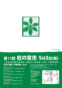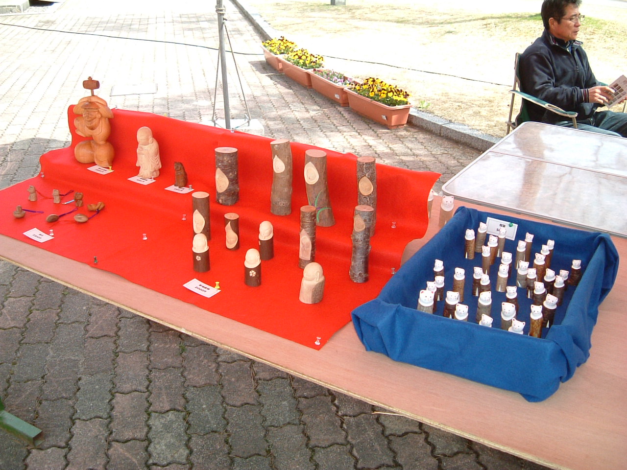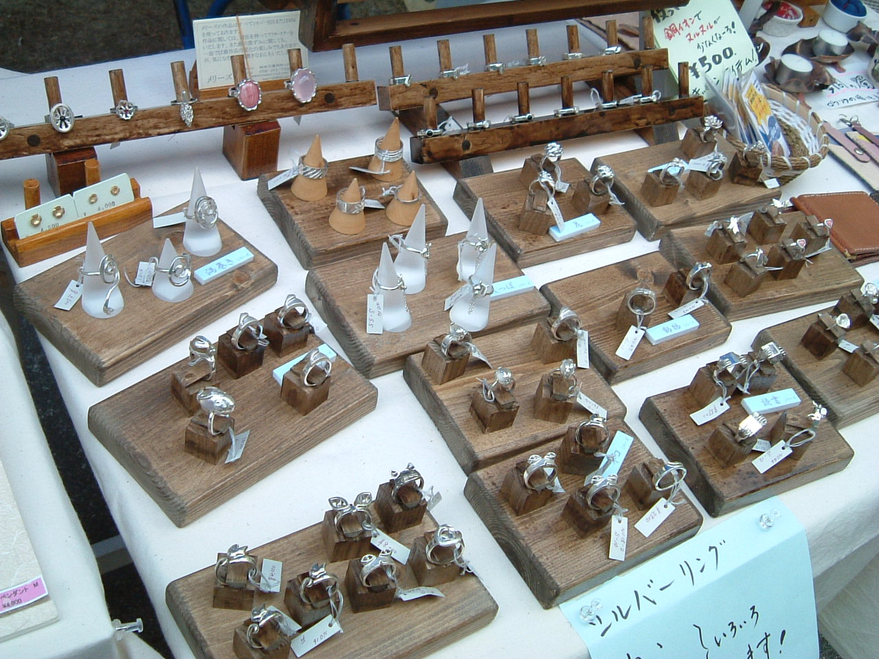 に出展してきました。 本来の日程は5月3日、4日、5日の3日間でしたが、5月3日が 一宮の杜の宮市とダブってしまったので無理を言って、5月4日からの 参加にさせていただきました。 AM9:00~PM4:30の開催時間のため自宅を朝 4時に出発し、 6時に現地に到着しました。 気温は4度ぐらいで風が吹くと結構寒くて準備の間にもう一枚重ね着をしました。 の建物です。 木を贅沢に使った建物で中は清見クラフト協会の 会員の方の作品がたくさん展示されていました。 こんな感じに木工家具とかステンドグラス染色など素敵な作品がいっぱいでした。 銀の道やその他の会員外の参加者は外での展示になります。 建物をはさんで左右と壁面にそってブースが設営されていました。 展示台を使って、少しワイドに展開させて いただきました。 高山市内ですでに展示販売を1年以上 にわたってしてきた銀のさるぼぼペンダントも 地元の人たちには初のお披露目です。 山梨窯 安江清五郎さんの陶芸作品です。 すべての器に花などが色鮮やかに手書きで 描かれていました。 しかもとてもお値打ちな価格だったので、 ついお皿を一枚買ってしまいました。 悠々工房 川上寛さんの木彫りの動物や 童子の顔の人形です。 原木に直接顔を彫ってあるのが特徴で、 もともとは仏像を彫っていらしたそうです。 清見クラフト協会会員の木童工房の社長さんが いつもは家具を作っていらっしゃるそうですが 今回は木のプランターやバターナイフつくりの 指導をされていました。 今回このクラフト展でのもうひとつのわたしの楽しみは、ポストマンの代表 山本義明さんに 会って、お話が聞けるんではないかと言う期待があったことです。 いろいろな話を聞くことが出来ました。 タイヘン気さくな方で作品の製作上のこともわたしの疑問に気軽に応えていただき 画像だけではわからなかったこと、また製作のアプローチの方法も大変勉強になりました。 本当にありがとう御座いました。 下の画像が山本さんの作品です。 この2日間はまたいろいろなお客様が銀の道のお店に立ち寄ってくださいました。 地元の方もまたせせらぎ街道を利用して高山に遊びに行かれる方も、 会話の中からまた新しい作品のきっかけをいただきました。 お立ち寄りいただいたお客様本当にありがとう御座いました。 また私にとっても大変充実した二日間でした。 次のクラフト展の予告です 青空クリエーターズフェスタ @籠田公園 開催日 2011.5.8 (日) 雨天順延→5.15(日) 開催期間 10:00~夕暮れ (16:00頃) 開催場所 籠田公園 (岡崎市伝馬通り)にて 今度は岡崎 籠田公園でお会いしましょう。 一宮 杜の宮市を済ませて次の日から高山 清見クラフト展に出展のため高山に行っていたため、 記事を書くのが遅れてスイマセン。 一宮 杜の宮市出展報告 です。 前にも書きましたが自宅兼工房から比較的近い場所ですので、ゆっくり出発したつもりでも7時クラフト部門 受付の順番に一番に並ぶことになってしまいました。 「それがどうした!」 って声が聞こえそうですが、 ここに対する意気込みの現われだと思って、読み流してください。 杜の宮市は市内の繁華街にちかい真清田の境内を中心に行われてきました。 今年で11回目です。 こちらが真清田神社の本殿です。左は桜門と宮前三八市広場のブース風景です 銀の道ブースまえもこんな状態でした。 その他のブース風景です。 のぞいていらっしゃったので、お願いして1枚 撮らせていただきました。 雰囲気を盛り上げてくれてました。 画像はそのうちの タテタカコさんのステージ風景です。 お話をうかがった、鍛金をなさっている MASAMI'S WORKS の水野正美さんの作品です。 非常に丁寧な仕事をされていました。 私自身が鍛金を学んでみたいと 思っているせいか、こうゆう分野の方を見ると ついお話を伺ってみたくなってしまうんです。 大変親切にいろいろ教えてくださってありがとう御座いました。