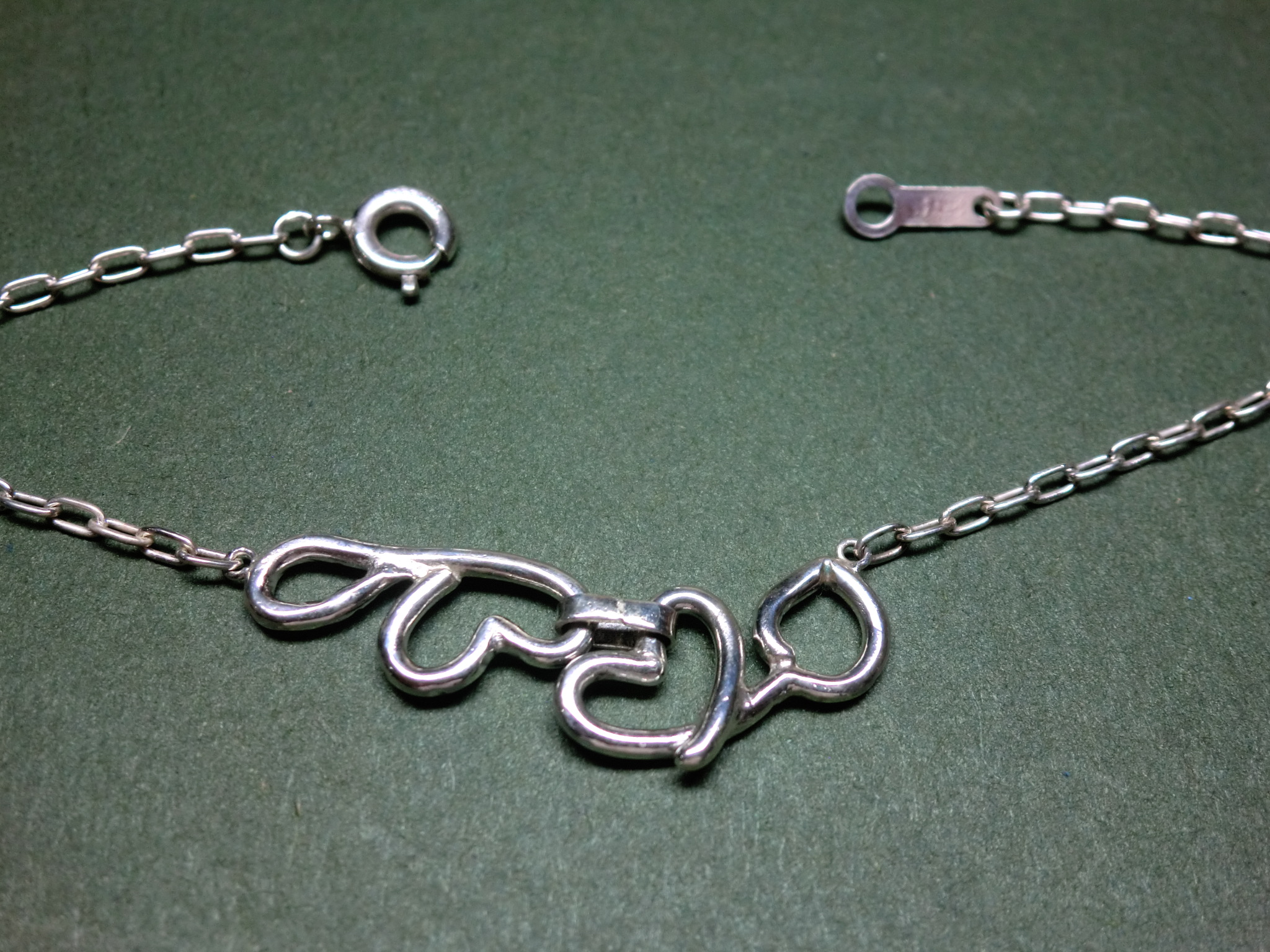 ハートのモチーフを二点つないでみました。
