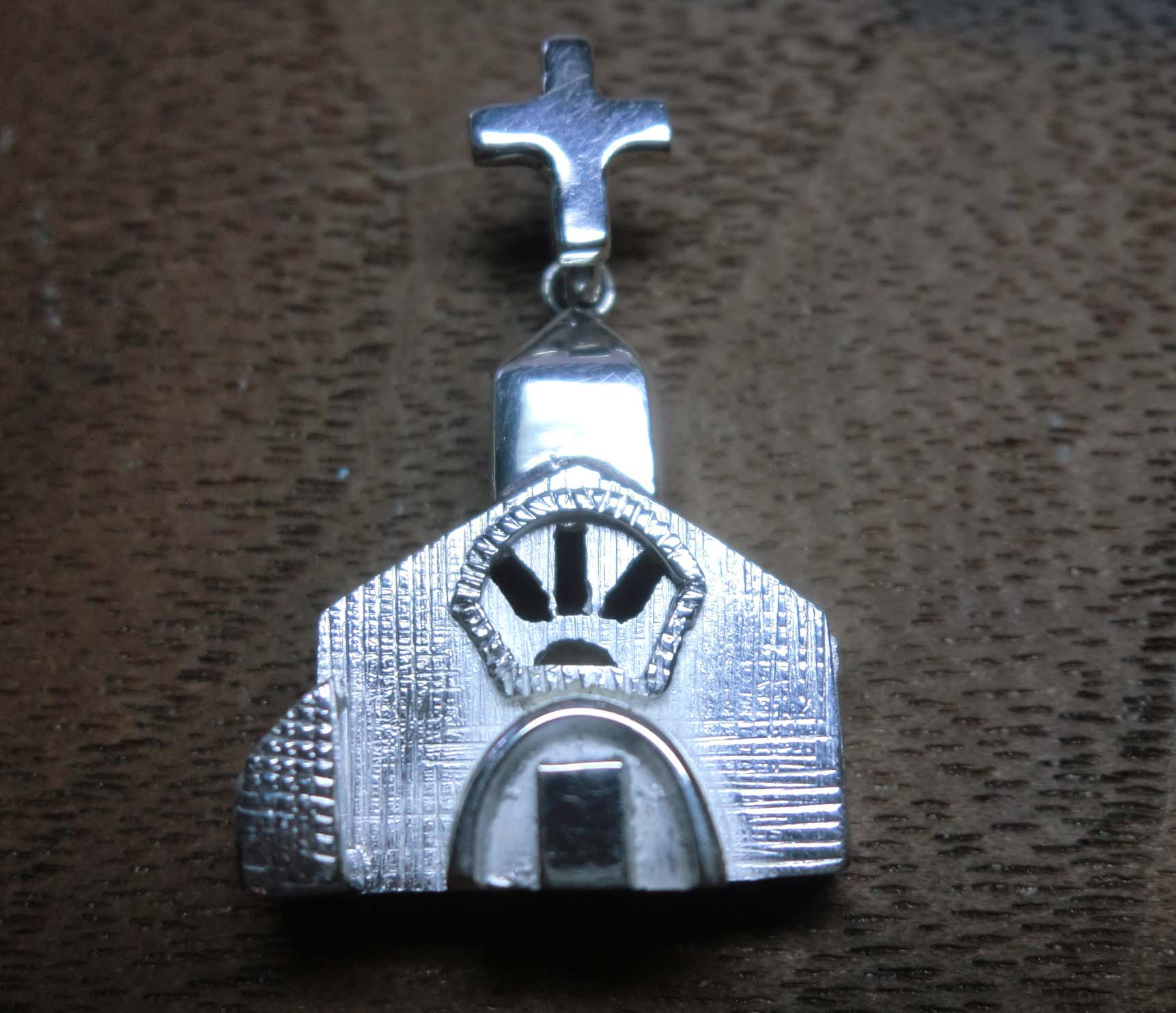 13日から18日までのお盆休みの内、高山に営業も行きましたし、たまってしまった帳簿も きちんと整理しました。また革のディスプレィー用の立てる小物も栗の木 を使って作りました。 ( もう木工作家になったら、と妻が云っています。・・・・・・一瞬それもいいかなと思った 自分が怖いです。) で新作ですが、村の教会です。農家シリーズの一つです。 このペンダントは正面を意識して少し薄く作ってみました。 正面の十字架は、鐘楼の正面に貼り付けたかったのですが ここでは少し小さな十字架になりすぎて、ナンなのか分かりにくいので バチカンの正面に少し大きく貼り付けてみました。 休み中一生懸命お仕事はこなしたのですが、またまた残念な手紙を受け取りました。 11月2日からの 『 くらふとフェア蒲郡 』 選考落ちです。 9月~11月の東海地方の大きなイベントはほぼ全滅です。 くよくよ考えても始まらないので、こんな年もあると思い 空いた時間、制作に精を出します。 |