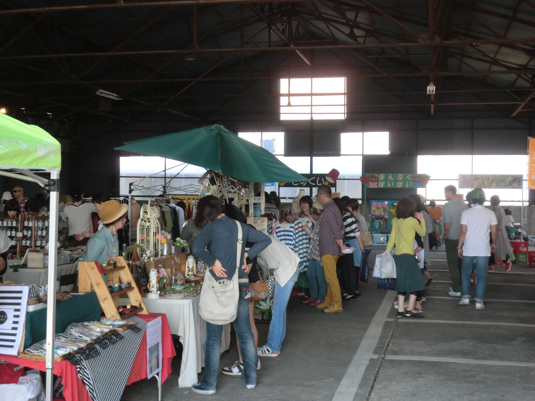5月1日(日)多治見河川敷サンデーマーケット ここはすでに終わっていますので、以下レポートを兼ねて 会場に着くまで、河川敷で店開きと思っていましたが、ある一定の数までは 全て駐車場の下、インドアー(屋根の下)でした。 見ていただいた通りの感じですが、天井照明のおかげでそこそこの明るさも確保 されていましたし飲食の出店も多く、結構和気あいあいとした手づくり市でした。 つるがクラフトマーケット 日程 5月14日(土)/15日(日) 会場 敦賀駅前商店街アーケード 国営木曽三川公園 ハンドメイド市 日程 5月28日(土)/29日(日) 会場 国営木曽三川公園 PR ● コメントフォーム |