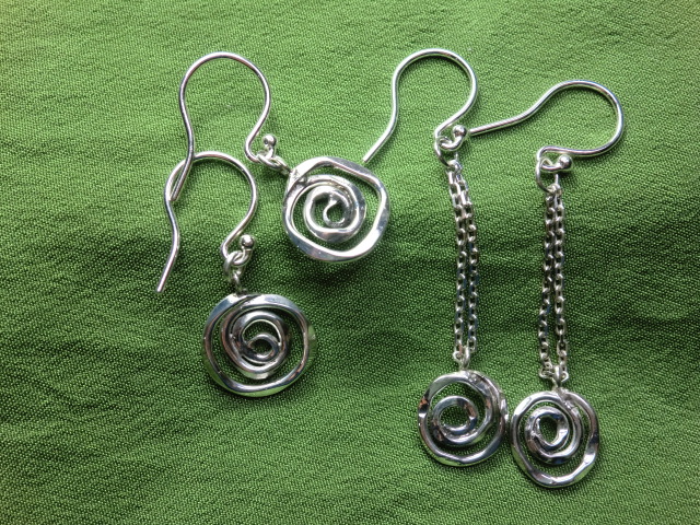 左は渦巻シリーズのピアス版です。指輪で作ったものはすぐに