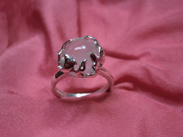 右はロードナイト(薔薇輝石)の指輪で花はクリスマスローズ風の花にしてみました。