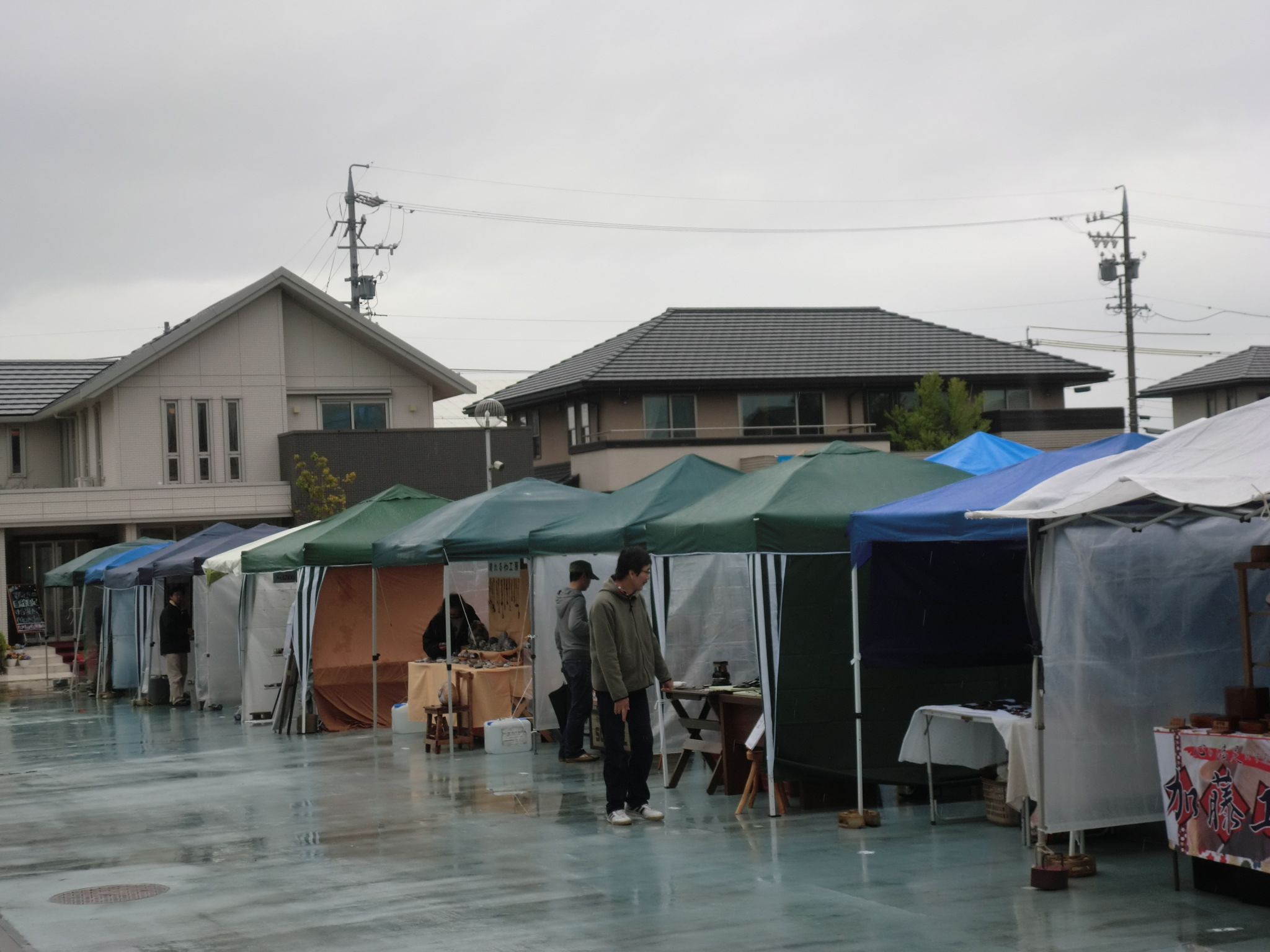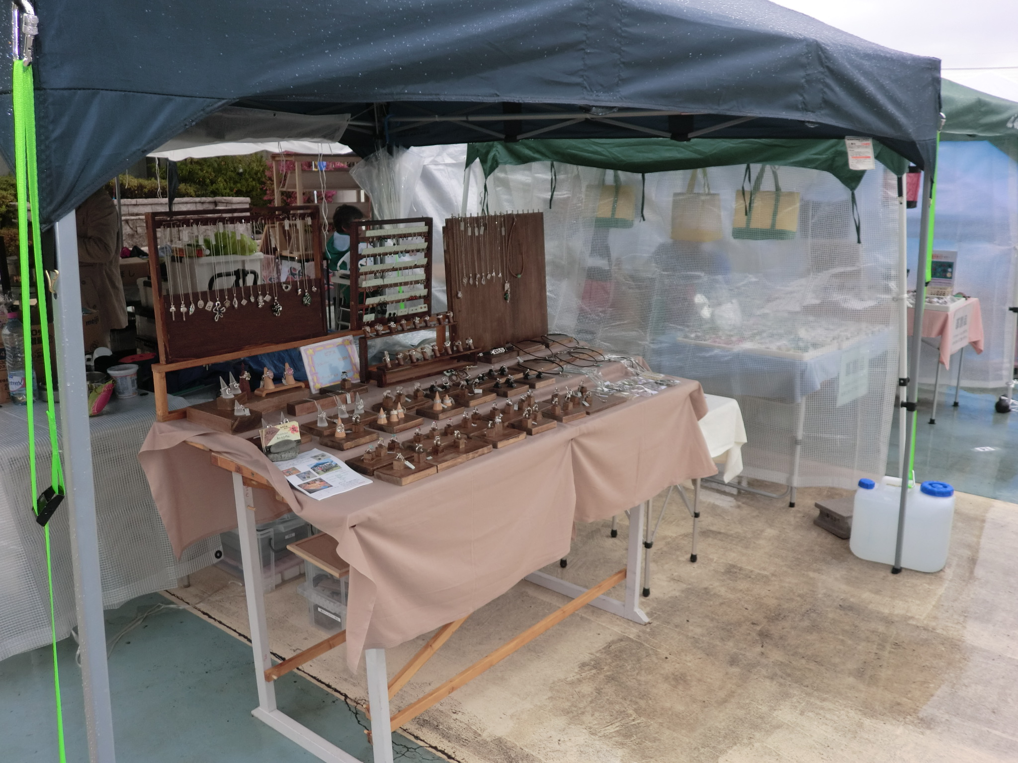 × [PR]上記の広告は3ヶ月以上新規記事投稿のないブログに表示されています。新しい記事を書く事で広告が消えます。 雨、雨、これだけ出展する土、日に雨が続くとラン、♪ ラン、♪、♪ と雨が大好きになります。 ダメです。脳が腐り始めて心にもないことを言いはじめました。 4月13日(金) 前日搬入、タープの設営をおわると雨がポツ、ポツと落ちてきました。 夜半の雨は翌日の14日になっても降り止まず、結局雨が上がったのは一日目の終了時刻の 16時過ぎでした。 銀の道のブースも雨が降りこむため、革も和布も並べることが出来ず銀作品だけの 展示になってしまいました。 雨と肌寒さのため、お客さんの数もあまり伸びません。 明日があるさとその夜は他の作家さんたちと自主的に交流会で盛り上がってしまいました。 ![]() 朝5時に目がさめ会場からは 朝日がこんなに明るく力強く、今日こそお客さんがたくさん来てくれますように。 も全部並んで見ていただけました。花の新しい作品の巻き玉のペンダントも 早速お買い上げ頂きました。 好みのクラフトブースに向かうお客様達。 やっぱりクラフト展は、明るいお日様 が欠かせません。 ![]() PR ● コメントフォーム |
