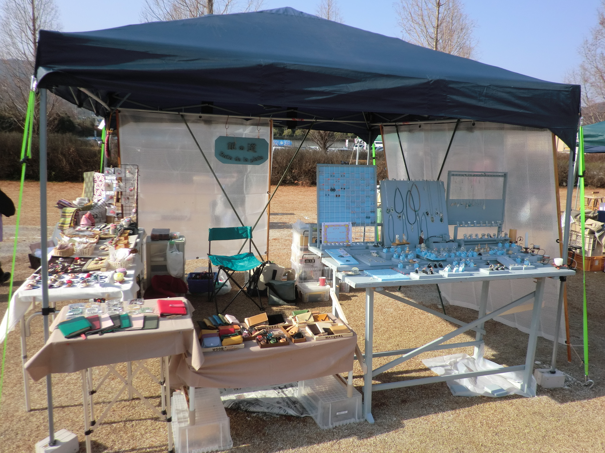 × [PR]上記の広告は3ヶ月以上新規記事投稿のないブログに表示されています。新しい記事を書く事で広告が消えます。 三重県の農業公園ベルファームで行われた手づくり市に行ってきました。 寒波の南下でかなりの寒さと風を覚悟して現地に着きましたが、 以外に寒さはそれほど強く感じませんでした。 今回も3m×3mブースなのでフルラインアップで展示しました。 今回の出展者数は24ブースぐらいでした。 前回に引き続いて新しい販売担当です。うさぎ部門を受け持ちます。 また新作としては革の小銭入れです。よく女性向けの財布は無いのって 聞かれるのでまず第一弾としてオーソドックスな作りで色々な色の革を使って つくってみました。 もう一つ風対策としてこんな仕組みを採用しました。 タープのねじれを防止するために二箇所に筋交いを付けてみました。 今回三時を過ぎた頃から結構風が強く吹くことがあったんですが、 バッチリタープを支えてくれました。 上の写真はお昼に食べた伊勢うどんです。ベルファームの中の 食堂のメニュウにあったので早速いただきました。 ![]() PR ● コメントフォーム |