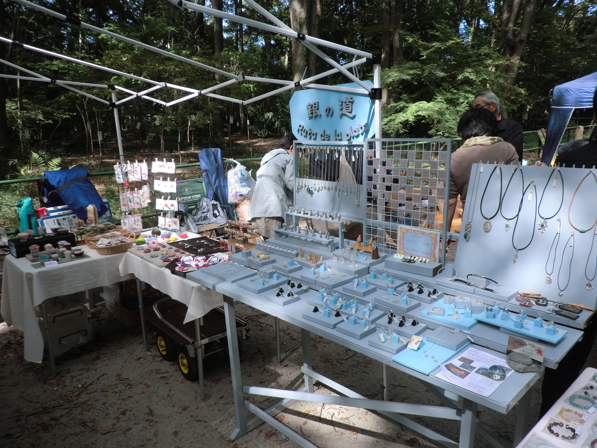 下鴨神社 の森の手づくり市に行ってきました。 今年は3回目の出展です。ものづくりARTtowwnをいれれば 4回目の京都になります。 今回は天候にも恵まれました。朝のうちはといっても6時ごろは すこし肌寒さが感じられましたが、会場時間の10時ごろは 気温も暖かみをまし、絶好のクラフト日和になりました。 おかげさまでこんなに多くのお客様に朝早くからいらして頂けました。 左は下鴨神社をバックに南に向いて写した画像です。 右は逆に南側から北に向いて写しました。 銀の道のブ-スも今回は縦長に展示し、お天気が良いので ![]() 屋根の部分も取り外し 商品にも太陽の光があたって見栄えがするようしました。 いつもは展示台にくっつける革用の棚も今回は 『ひとり立ち』 です。 そして店名看板も初めて上のほうに飾り付けられました。 今回はフードブースの数も増え、いろんなジャンルのお店屋さんが 出ていました。パン屋さん、スイーツ関係、エスニック、窯焼ピザと 美味しいものががいっぱいで、銀の道のブース前を通ってゆくお客様 が持っているものについ目が? ![]() 結局何度かフードブースに足を運ぶ結果になってしまいました。 PR ● コメントフォーム |