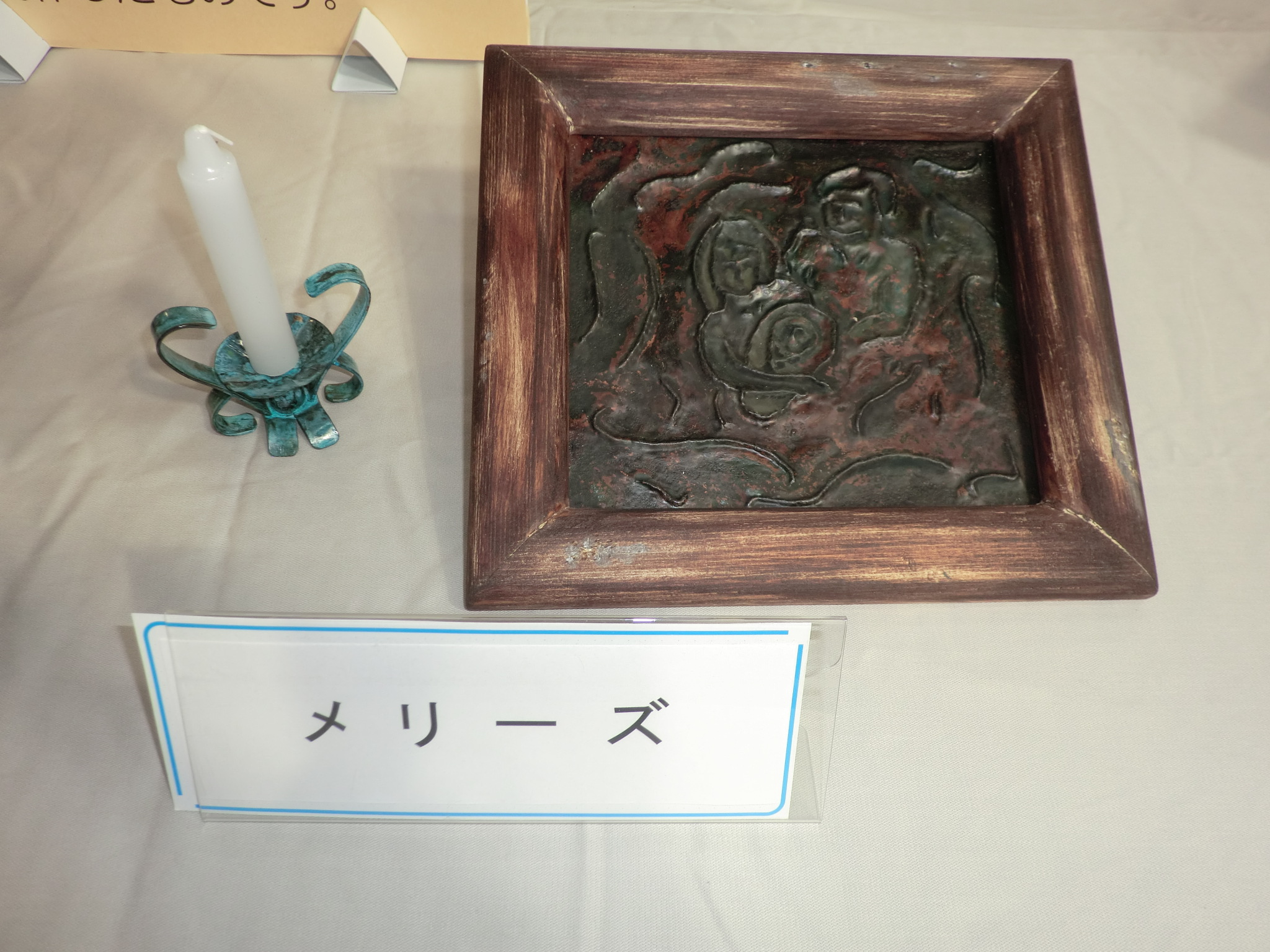 × [PR]上記の広告は3ヶ月以上新規記事投稿のないブログに表示されています。新しい記事を書く事で広告が消えます。 高山氏の郊外、清見町の秋のクラフト展に出展してきました。 10月27日~28日の二日間行われました。 銀のサルボボのペンダントなどを高山のお店に置いていることもあって 去年から清見のクラフト展に出させていただいています。 山の景色はまだ全山紅葉にはすこし早かったようです。 ![]() 画像は春に販促用に作ったポップです。 銀のサルボボもいいでしょう。 ![]() 会場は屋根付のドームの中です。 展示台のスペースは 3.6m×09m と十分な広さがありまた各ブースに ストーブが一つずつ置かれてあって、寒さも風も雨の心配の無い快適な会場に なっています。 毎年テーマが決められていて色々な分野の作家さんがにテーマに沿った 作品を出されています。今年は『家族』というテーマでした。 今回私は銅版のレリーフで作品を作ってみました。額も自作です。 すこしヨーロッパの田舎の家の壁にかかっているような煤けた雰囲気にしてみました。 蜀台も青色の緑青付けにして銅の赤い色から青の色味に変化させています。 テーマ作品の全部は紹介しきれないので、ピックアップして 銅でつくられたポストマンさんの作品と、ネコの表情が可愛かったので 工房マイマイさんの木工作品です。 また28日(日)にはウッドフォーラム前の駐車場で ひだ清見紅葉まつりが行われ農作物、特産品の即売 また飲食バザーなど数多くの店が出店して多くの地元の方で にぎわいました。 ![]() 常設店舗の野菜直売場は朝のうちから多くのお客さんで大賑わいでした。 会場のフードコートからはおいしそうな匂いが流れてきます。 左は去年初めて食べてとてもおいしくて今年も一番に求めた 清見の猟友会さんがだしている 『 しし汁 』 です。 臭みも無く本当においしかったです。 右は高山市内で』お店を出している 『 チロル 』 さんのカレーです。 こちらもたいへん美味しかったです。 28日は雨模様でしたが、予報よりは雨量も少なくて助かりました。 雨の中足を運んでいただたお客様本当にありがとうございました。 また準備、運営にお世話になった清見クラフト協会の皆様、スタッフの皆様 お疲れ様でした。 たいへんお世話になり、どうもありがとうございました。 PR ● コメントフォーム |