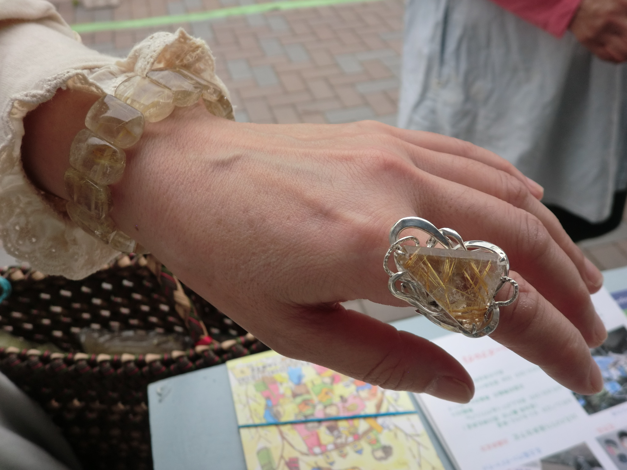 メリーズとしては今回が初出展で、イベントの中身に関しては 全く予想がつかない状態でしたが興味深々で出かけていきました。 町全体で色々な催しが行われ、人出もかなり多かったみたいです。 残念なことに、我々の会場の深川神社から全く動けないので 他も会場の模様に関してはあとから新聞で知ったぐらいです。 深川神社の会場の様子はこんな感じでした。 それでも多くのお客様が来場され、メリーズのブースにも 立ち寄っていただくことが出来ました。 本当にありがとうございました。 ここでもいろいろな出会いを経験できました。 出来上がったばかりのルチルクォーツの指輪も、 M.Hさんに気に入っていただき早速指にはめて行かれました。 パワーストーンアクセサリー作家さん(工房まゆなぎ)ということで、 やはり石にひかれたとのことです。 またロード用の自転車で名古屋からやってこられた S.Eさん とは 自転車談議に花が咲き長いこと引き止めることでご迷惑だったんじゃないかと 後から少し反省しました。 PR ● コメントフォーム |