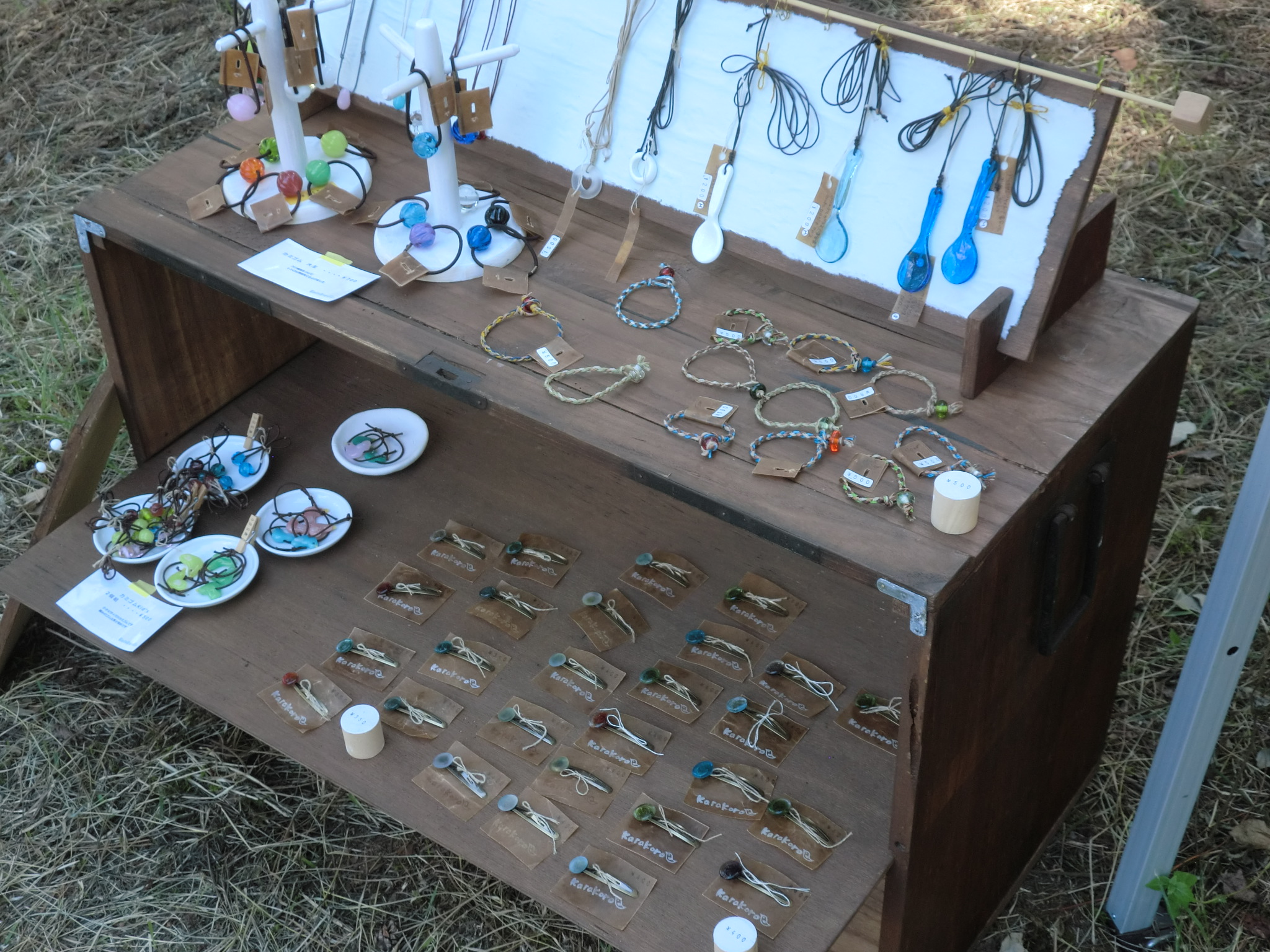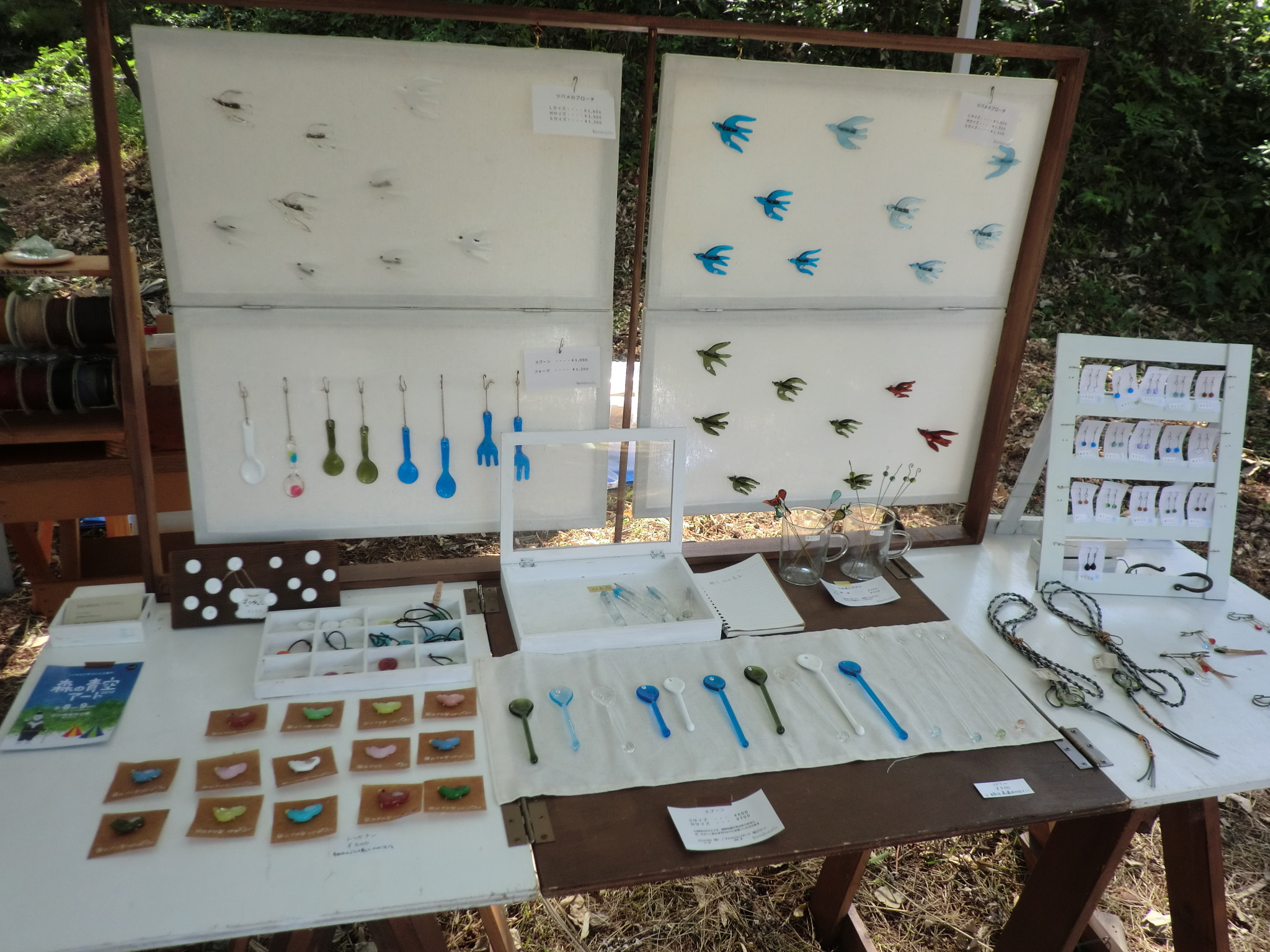 石川県 碁石ヶ峰クラフトマーケットに行って来ました。 24日の夜自宅を出発、深夜3時過ぎに現地に到着しました。 ![]() 一時間程度の仮眠の後、会場の原山大池横キャンプ場にて 受付、ブースの確定の為のくじを引き、お店の開店準備に入りました。 ![]() 車で行ってみました。 そこから見た中能登町方面の夜景は幻想的でとても 素晴らしいものでした。 会場になる池見台の付近にはこんな石碑も、そして周囲1.5Kmの原山大池の周囲は 鬱そうとした木立に囲まれ、静かなたたずまいの中われわれクラフトマンを迎えてくれました。 開店です。朝は木立を吹き抜ける 風がとってもさわやかでした。 ![]() しかし、時間の経過とともに太陽の光 は厳しさを増し気温がグングンと上昇。朝の快適さは何処へ? 銀の道のブースのあたりは木陰が無いため テントの中もかなり暑くなって、ときどき近くの木の陰に避難して 暑さ対策をしなくてはなりませんでした。 池でイカダ遊びをする小学生が涼しそうでとても羨ましく感じられました。 ![]() タップリの木陰のしたで、私から見るととても涼しげ でした。 ![]() でも風が通らないためやはり暑いとの言葉もありましたが? そんな中から今回のお隣さんは、 長野県飯山市から参加の Karakoro 「 カラコロ 」 の サトウさん という女性の作家さんです お隣といって何処まで行くのだ、という意見もありますが細かいことは気にしないで・・・・ ガラスのアクセサリーを作ってらっしゃいます。 とてもポップな感じの色使いで、鳥のブローチや ボタンなどは 、かたち に優しい感じが あふれています。 ![]() 上のペンダントもシンプルなんですがとても可愛らしく、自分では こんな感じの作品を作りたいと思ってもなかなかうまくいきません。 並べ方もなんとなく、ほんわかとしてますよね。 暑い中、会場に足を運び 『 銀の道 』 のブースにお立ち寄りいただいたお客様、 またお買い上げいただいたお客様まことにありがとうございました。 また今回 第1回のこのクラフトマーケットを主催された実行委員会の皆様、またサポーター で参加された皆様、暑い中たいへんだったと思います。 本当にお疲れ様でした。 PR ● コメントフォーム |