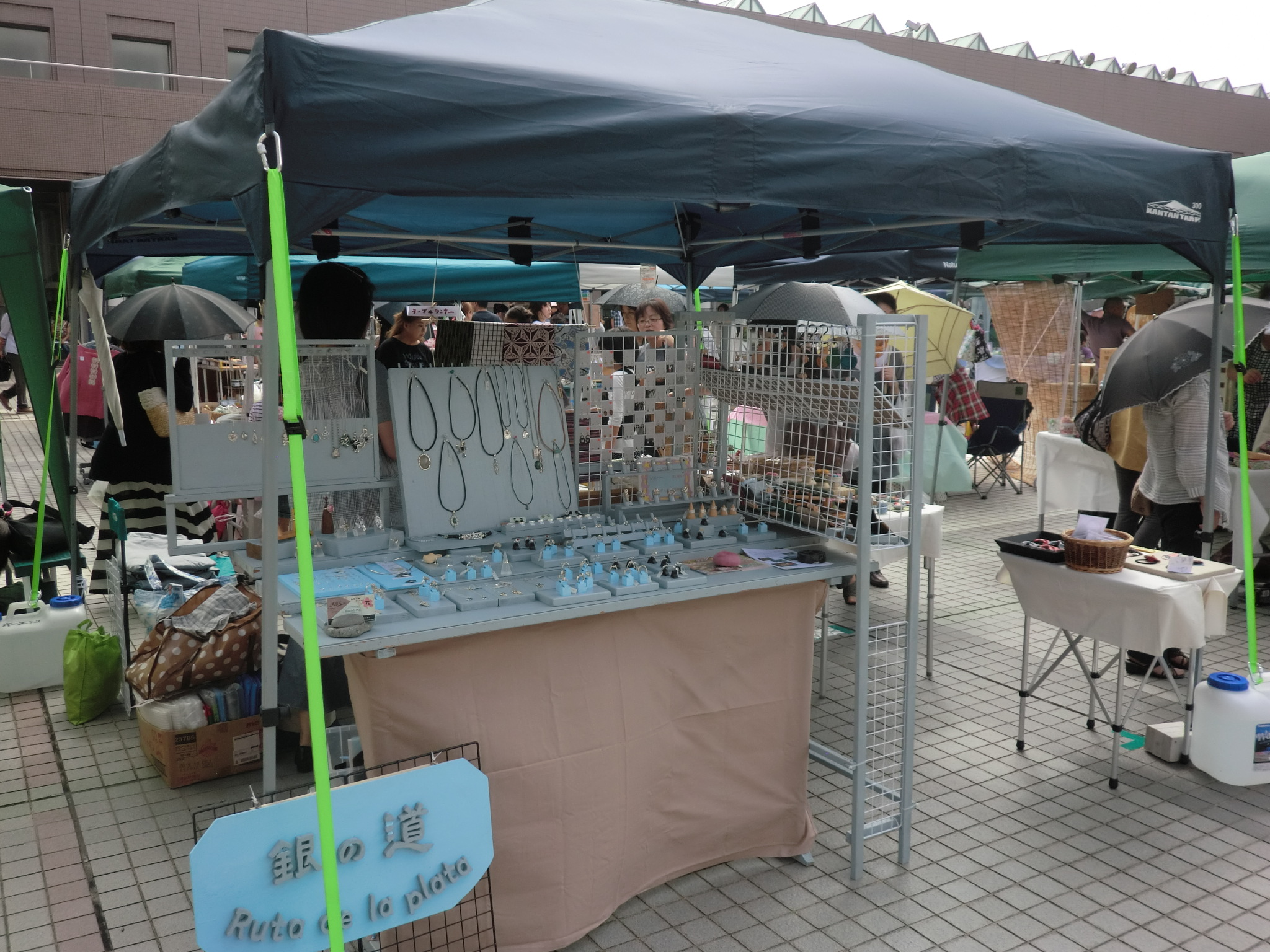 この三重県総合文化センターでの同じ催しに出展するのは、 今年2度目になります。 心配していた雨も降ることなく、逆に暑いぐらいの天候になりました。 ![]() このことは喜ぶべきことだったんですが、午後になるとすこし風が吹き始め ときどきかなりの強い風が吹くこともあり、商品が飛んだりタープが風で あおられたりと対応に気を使うことが多々ありました。 ![]() ![]() 銀の道のブースの風景です。今回のブースの配置が田の字型に レイアウトしていただいたおかげで、二面をフルに使い全アイテムを 並べることが出来ました。 堂々と上に掲げるつもりでしたが、 風を考慮してちょっと控えめのデビュウ になりました。 前回二階からの画像を撮り忘れたので今回は忘れずに、 祝祭広場のほうの全体を写真に撮りました。 また、ステージの出演は前回からおなじみの方たちの他、 新しく和太鼓の三宅友志太鼓の皆さんが勇壮な太鼓を披露してくれました。 今回もまたうれしいことがありました。 Happy ~ それは今回用に準備したネコの指輪が早速お買い上げ頂けたことと、 ![]() 前回お買い上げ頂いた A.N. 様がお顔を見せにお立ち寄りいただけたことです。 一つの出会いが未来へとつながっていくことは無上の喜びです。 ![]() PR ● コメントフォーム |