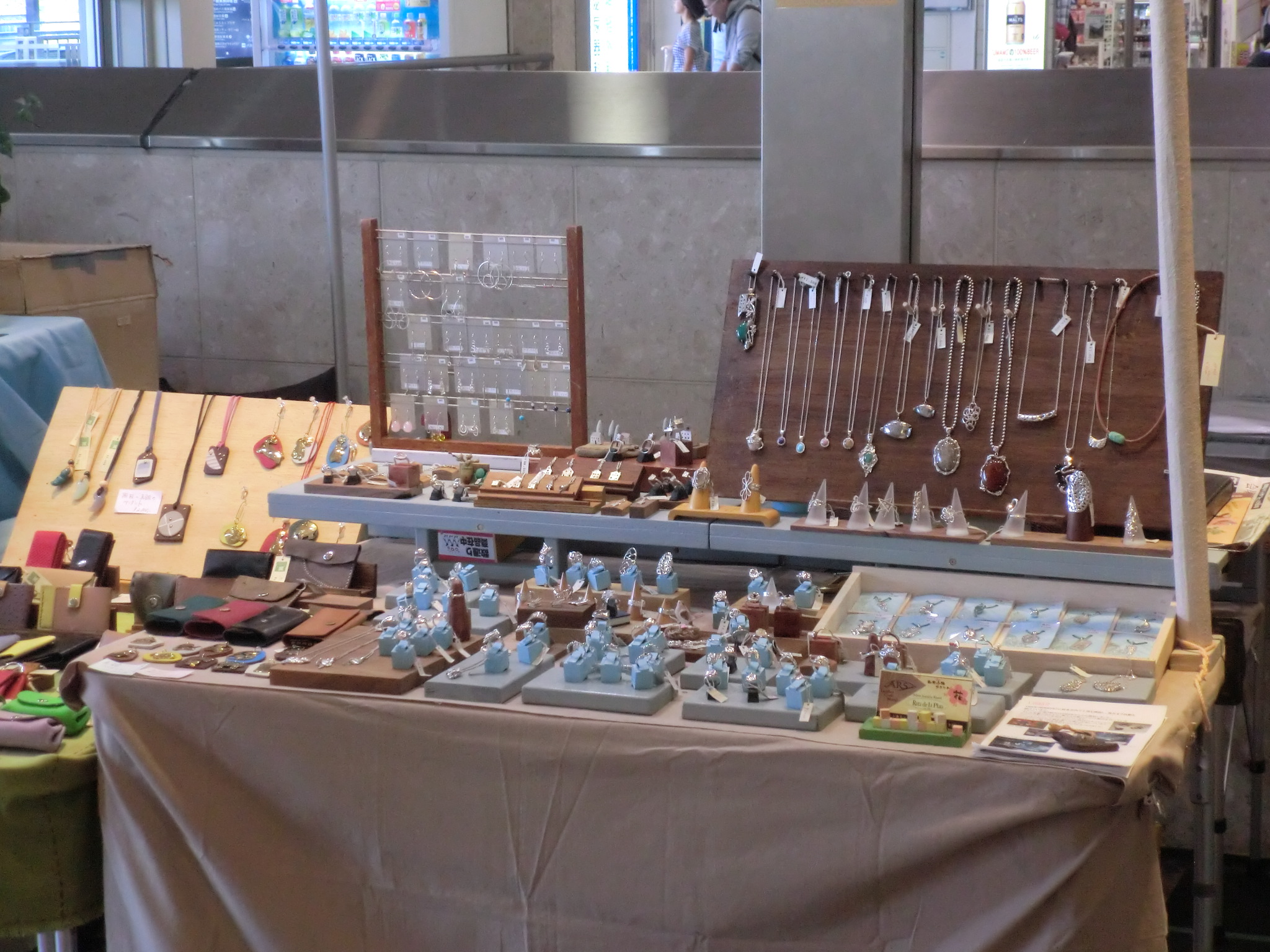 ・・さすが今回は少々疲れました。 朝8時前に会場入り、岐阜駅の会場のため毎朝展示什器をセットし 帰るときは毎夜完全撤収これを4日間繰り返しました。 ただ荷物は保管室で預かっていただけたのですごく助かりましたが。 そして会場を後にするのが夜の8時ということで、 12時間ほぼ立ちっぱなしでした。 そんなわけで今日は体中がゴリゴリ云ってます。 しかしびっくりするぐらい多くのお客様が来場されたことは、 我々参加者にとってはとても喜ばしいことでした。 左から岐阜駅会場、アクティブG2F会場 の風景です こちらが岐阜駅会場のNO112ブースのメリーズの展示風景です。 また信長ゆめ広場では色々なジャンルの音楽グループによる演奏も 行われ音楽を楽しむ人たちや、又周囲のフードコートで食べ物を 楽しむ人たちでもにぎわっていました。 今回、4日間共大変良いお天気に恵まれたことも幸いでした。 来場されたお客様、事務局スタッフの皆様、また参加された出展者の皆様 ありがとうございました。とても良いクラフトフェアの4日間でした。 PR