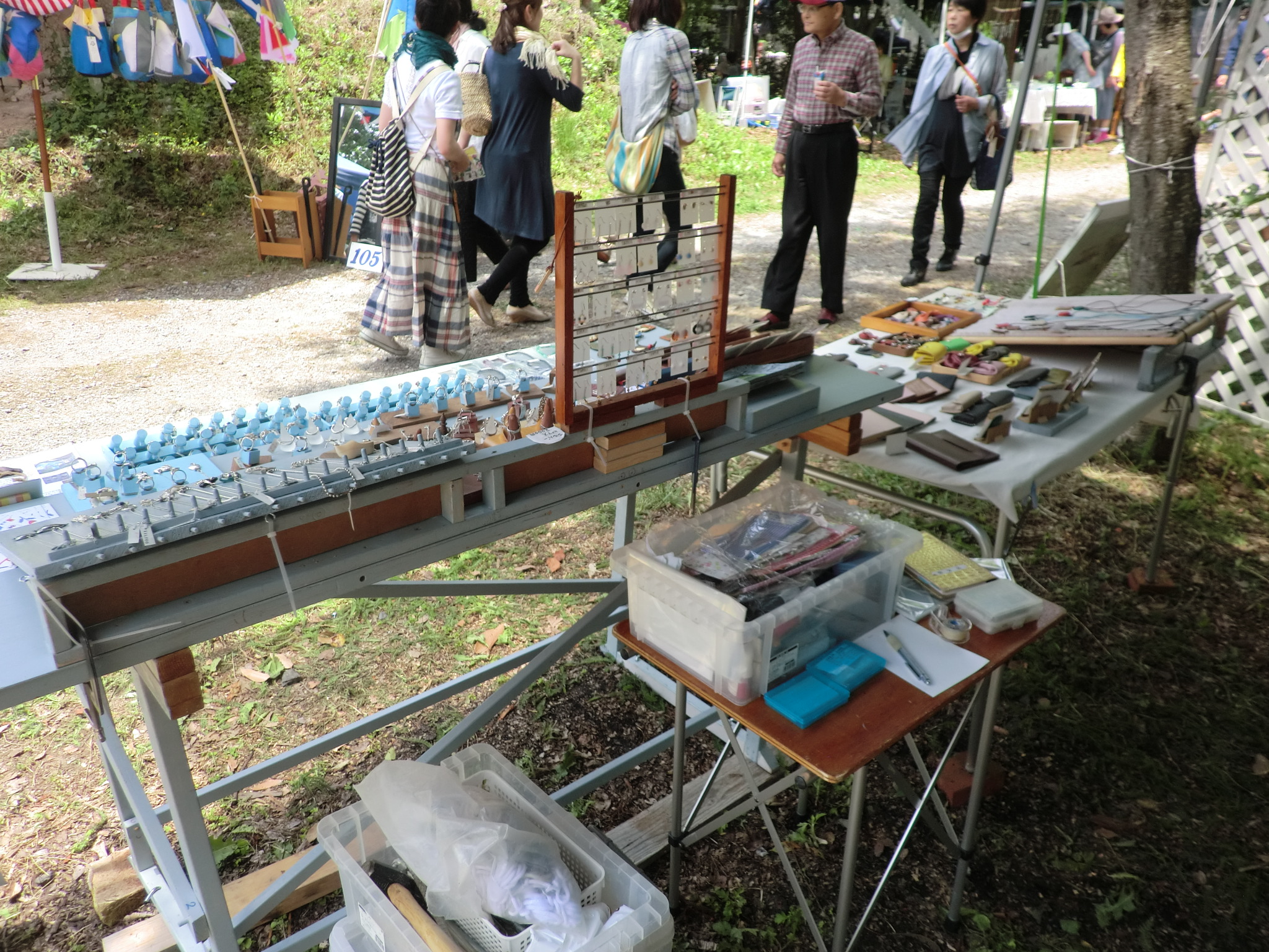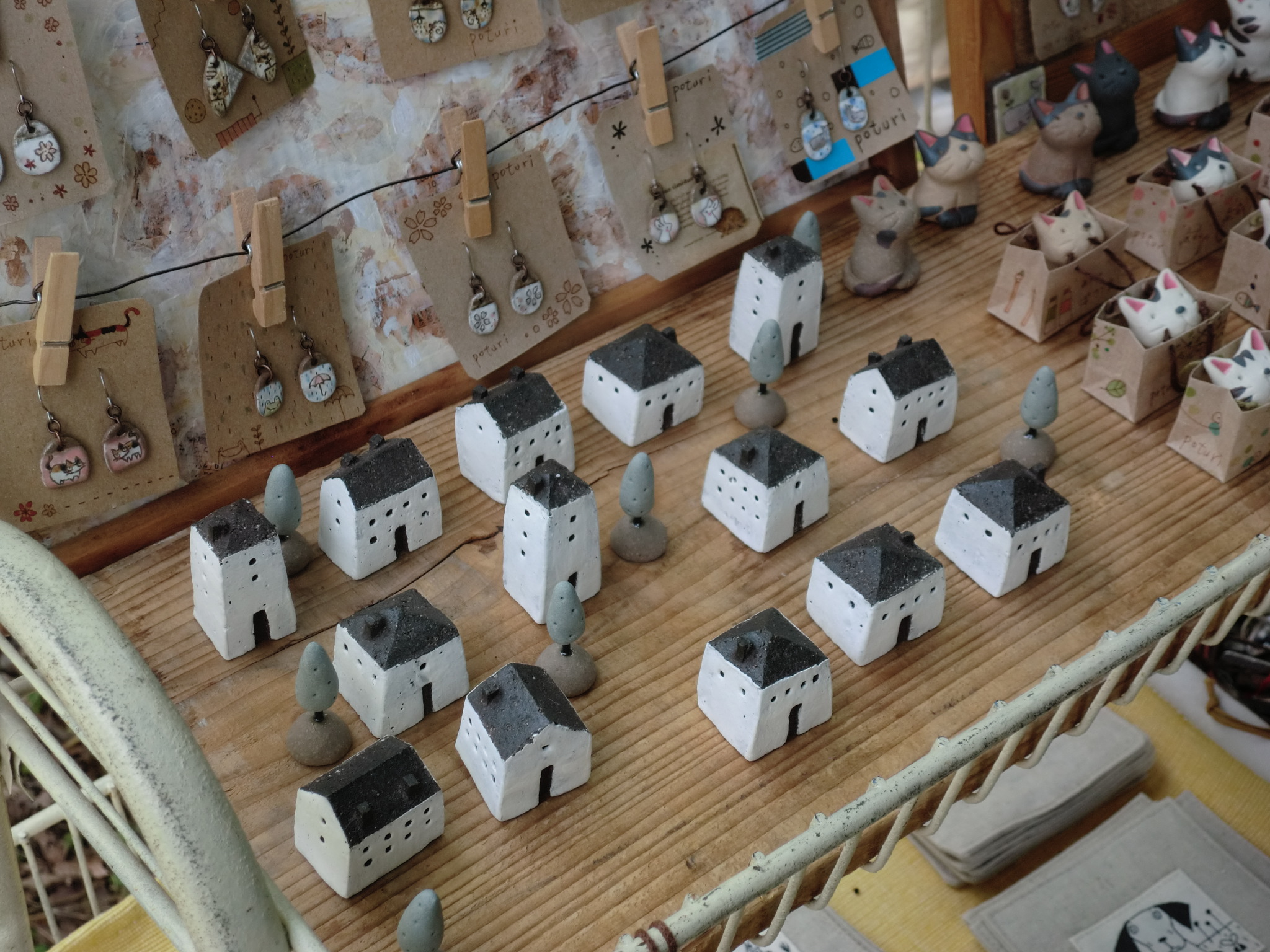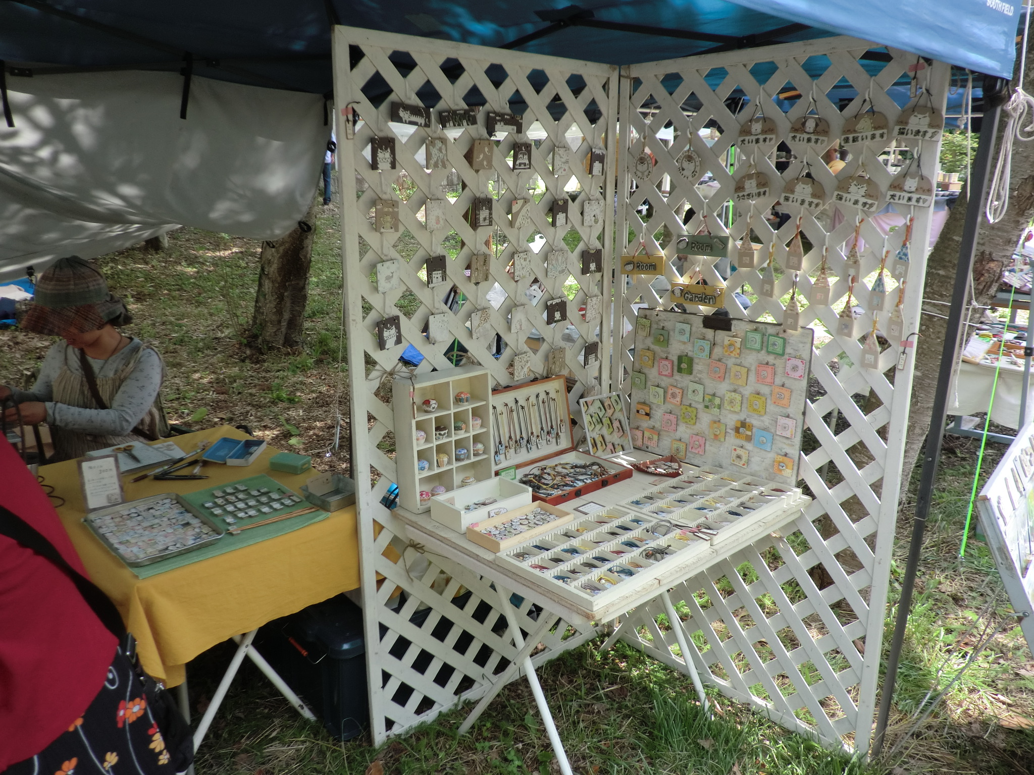 5月23日の15時ごろ会場到着、すでに出店回数の多いベテランの作家さんたちは 毎年の同じ場所にもう準備を終えている様子でした。 空きのスペースは4~5割ぐらいと意外に皆さんの前日搬入の割合いが 高いのにびっくりしました。 でも結構いい場所がまだまだありました。 2.3か所の候補地の中からまだ店を出したことのない入口ゲートからまっすぐの 道沿いに決めました。 土曜日の朝はタープが設営してあるのでゆっくり準備ができます。 天気予報は2日間とも上々のクラフト日和とのこと。 開場時間が近づくころからお客さんの数が増えてきます。 今回もお隣は親しくして頂いている 『工房ぽつり』さん。 お母さんと娘さんでいつも一緒に活動されています。 娘さんは会場でもペンを動かして絵の制作中。 左の陶器のお家と糸杉、あまり雰囲気が良かったので自分の農家シリーズの ディスプレーに早速使わせていただくため一つづつわけていただきました。 自分のところのブースはあまり変わり映えしませんが、少し壁面を低くくして 風通しを良くしています。 静かな森の中でのクラフト展。 大勢のお客さんがお目当ての物を探してゆっくり会場内を 散策していらっしゃいました。 2日間、ヘムスロイドにいらした多くのお客様どうもありがとうございました。 |