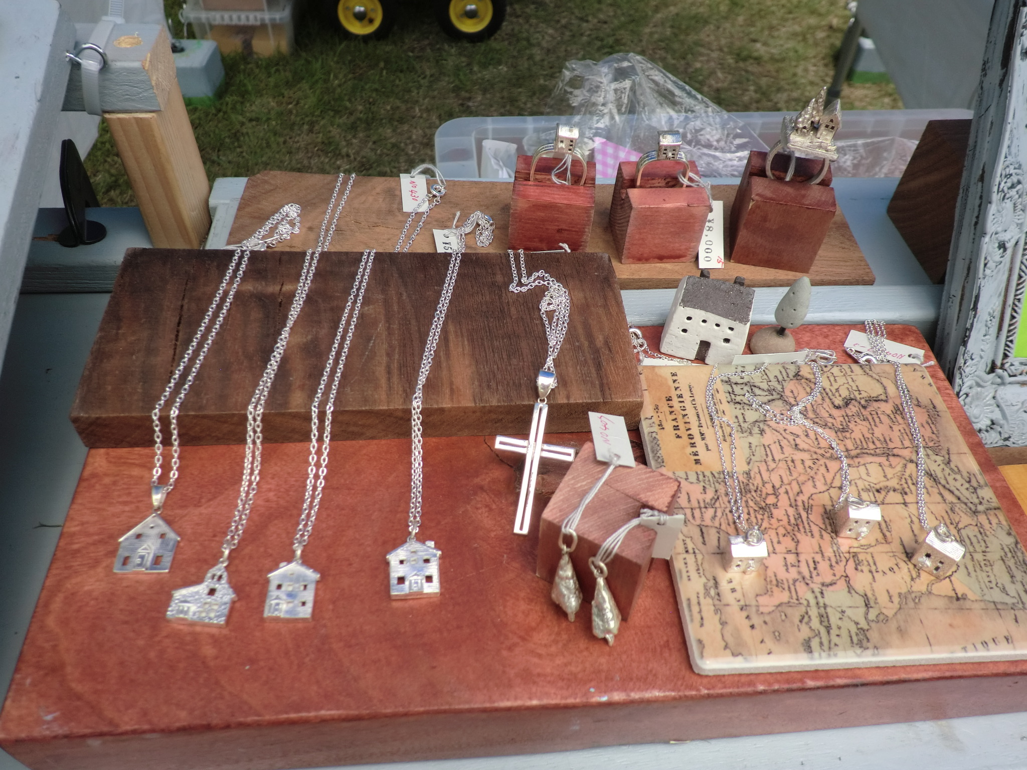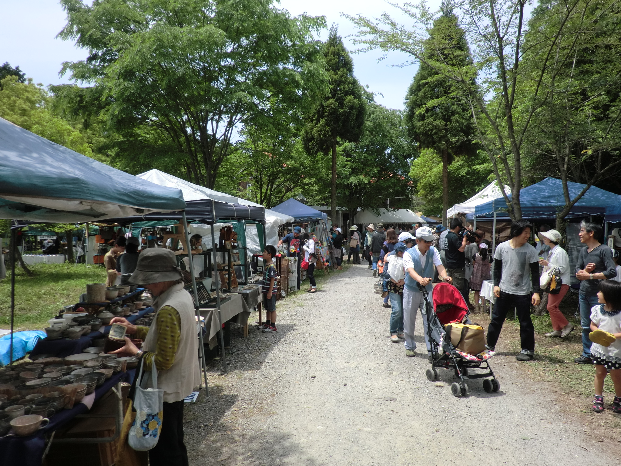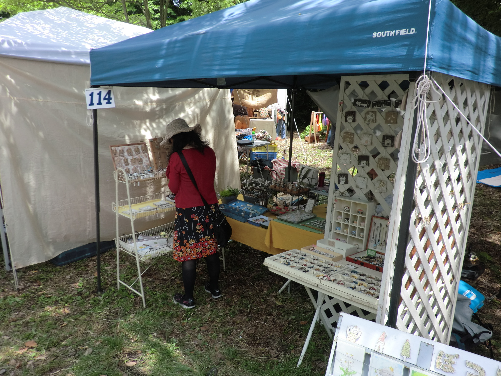 5月23日の15時ごろ会場到着、すでに出店回数の多いベテランの作家さんたちは 毎年の同じ場所にもう準備を終えている様子でした。 空きのスペースは4~5割ぐらいと意外に皆さんの前日搬入の割合いが 高いのにびっくりしました。 でも結構いい場所がまだまだありました。 2.3か所の候補地の中からまだ店を出したことのない入口ゲートからまっすぐの 道沿いに決めました。 土曜日の朝はタープが設営してあるのでゆっくり準備ができます。 天気予報は2日間とも上々のクラフト日和とのこと。 開場時間が近づくころからお客さんの数が増えてきます。 今回もお隣は親しくして頂いている 『工房ぽつり』さん。 お母さんと娘さんでいつも一緒に活動されています。 娘さんは会場でもペンを動かして絵の制作中。 左の陶器のお家と糸杉、あまり雰囲気が良かったので自分の農家シリーズの ディスプレーに早速使わせていただくため一つづつわけていただきました。 自分のところのブースはあまり変わり映えしませんが、少し壁面を低くくして 風通しを良くしています。 静かな森の中でのクラフト展。 大勢のお客さんがお目当ての物を探してゆっくり会場内を 散策していらっしゃいました。 2日間、ヘムスロイドにいらした多くのお客様どうもありがとうございました。 |