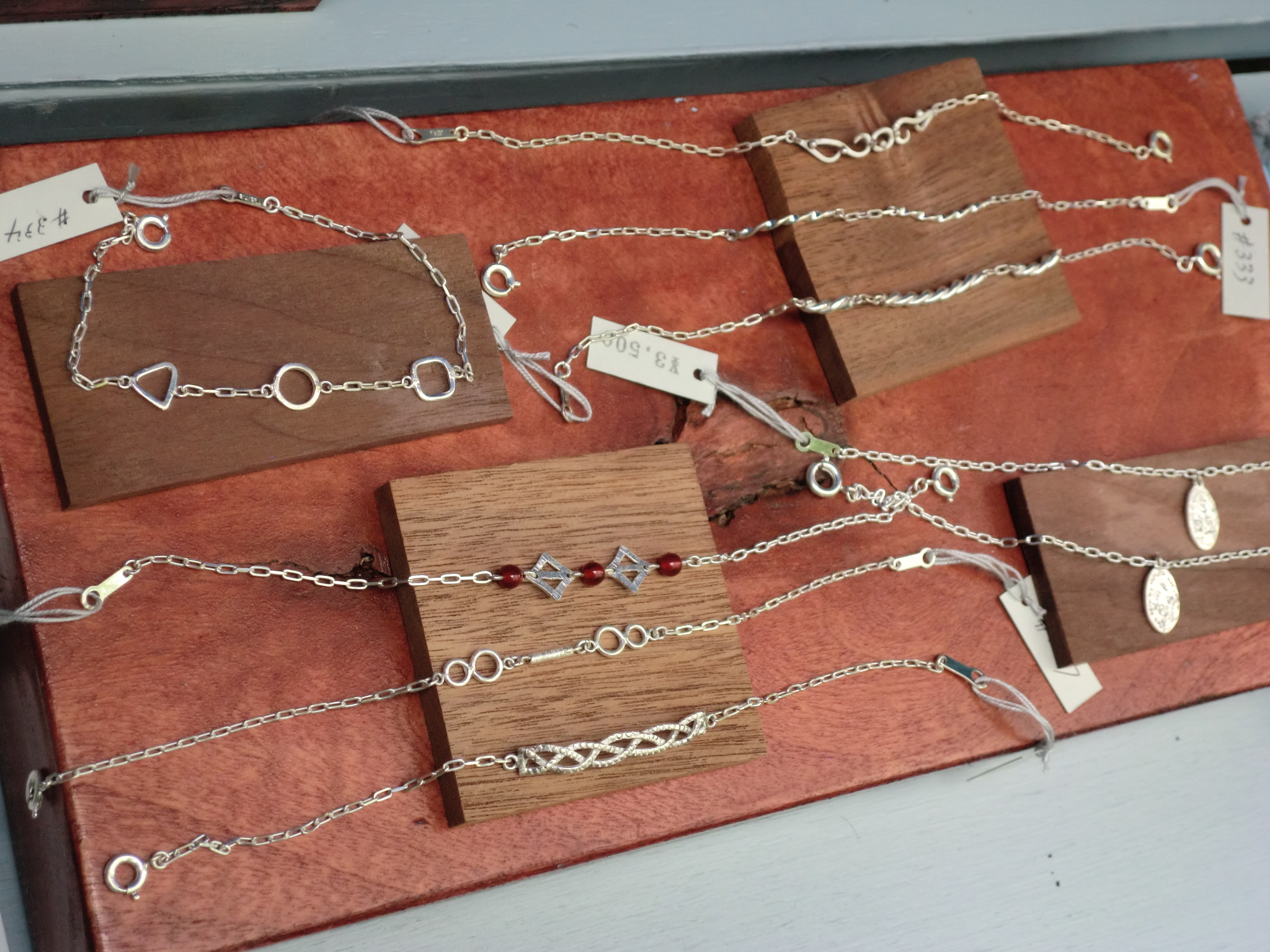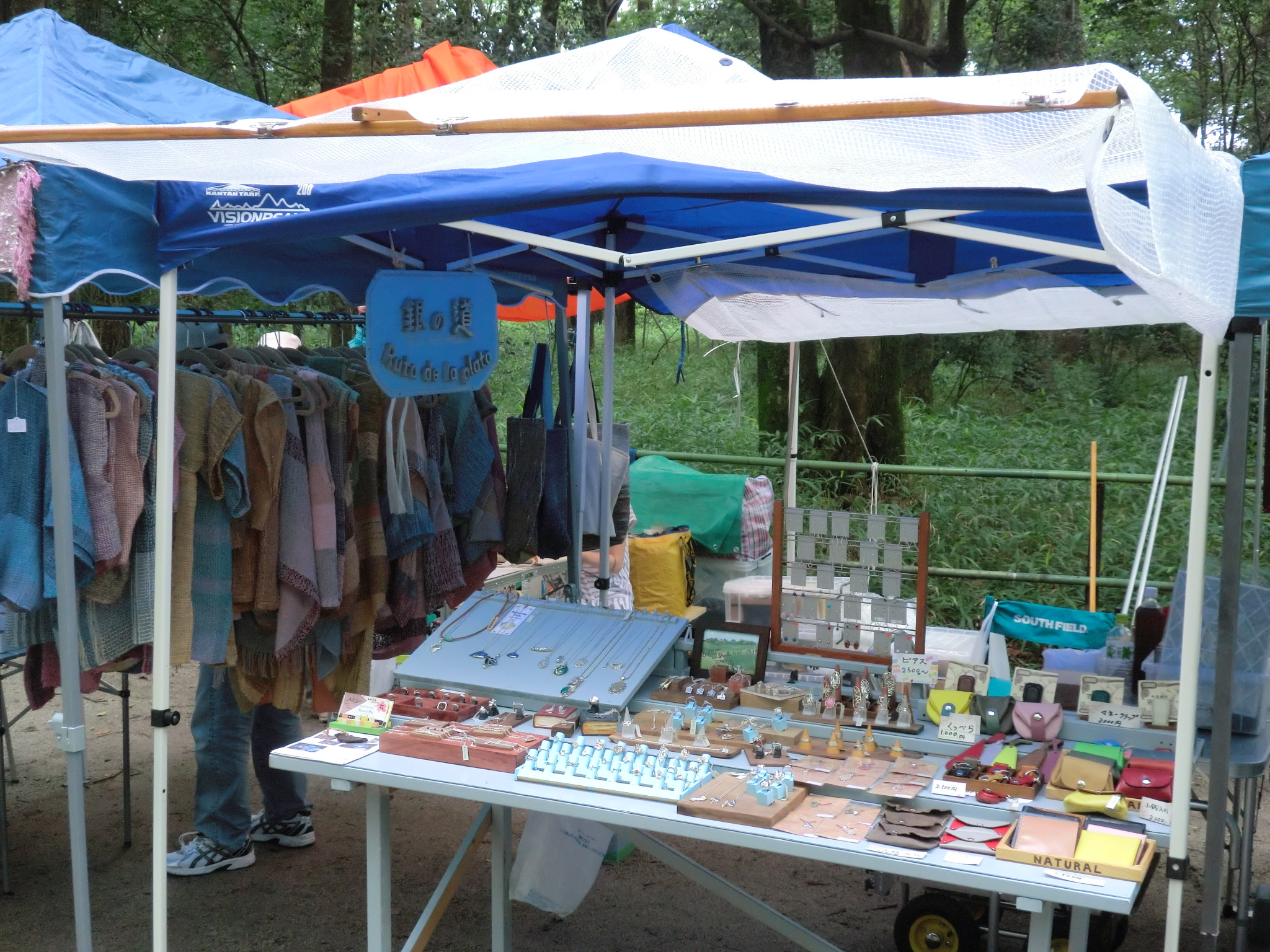 少し早く着いたため、本殿にお参りを済ましたあと近くを散歩してきました。 長い年月をかけて育てられた森は、朝の涼しい気温の中 その静かな佇まいと神秘的な木々に宿る精霊が映し出す 空間に心が洗われるような気さえしてきます。 今日は曇りがちな所為かお客様の来場は今一つの感がありました。 画像では結構、来場のお客様がいらっしゃるようですが いつもはもっと多く、もう少し通路が混んだ感じがします。 『 銀の道 』のブースは雨の心配があったため、軒先を少し張り出し お客様が濡れないようにさせていただきました。 今回デビューのピンキーリングと新しいブレスレットです。 一日雨の方もあまりひどく降ることもなく済みましたが、 日差しがなかったため、せっかくの銀の光沢が見てもらえなくて 残念でした。 6月7日~8日と福井県の武生の近くに行ってきました。