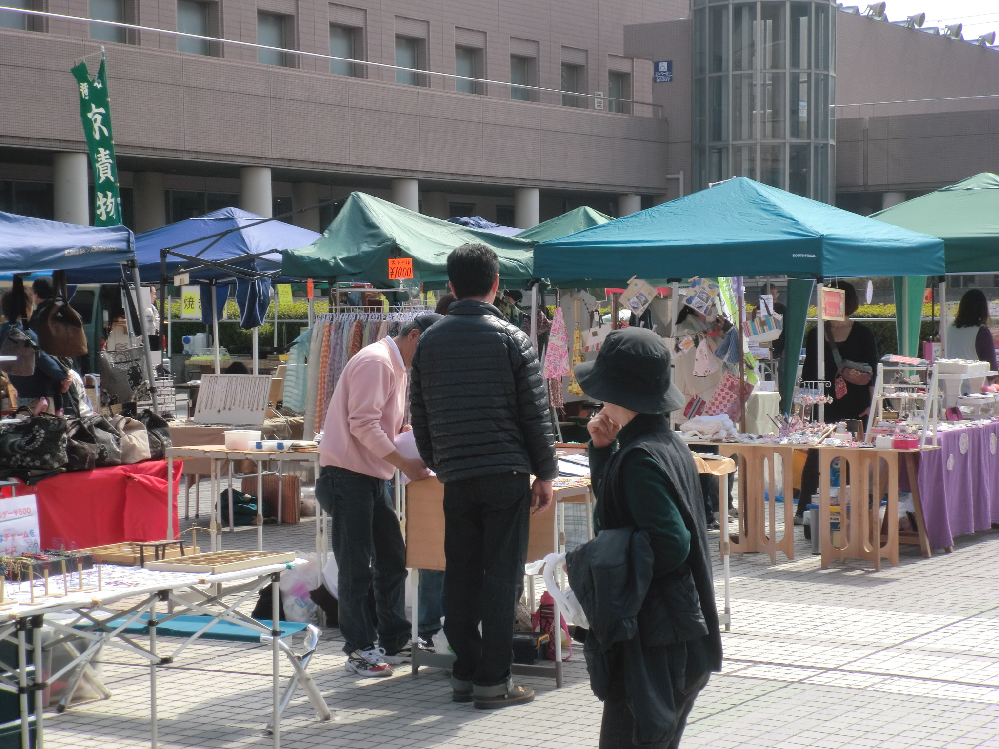 『 夢の手づくり市・祝祭 Vol 5 』 に行ってきました。 知り合いの作家さんも何人か出展されていて、久しぶり (といっても短い方で1ケ月、ながい方で2年ぐらい)に会えて 今年の出展先の情報交換等、貴重な情報をゲットすることができました。 いつも自分のブースの画像ばかりでは代わり映えしないので 今回はなるべく全体の画像にしてみました。 左は三重県総合文化センターの大ホールをバックにした全体の画像です。 1月19日という寒い季節にもかかわらず、クラフト、飲食合わせて 60の出展者さん達が集まりました。 右の画像は、ホール側の少し高い位置から知識に広場に向かって 写した画像です。 ブースも載せておきますね。 本当についでなんですよ。 ![]() 感想はといえば、寒かったです。でもやはりお客様と会って話せることは いいですね。ガンバル元気が出てきます。 次の予定は3月までありませんが、一生懸命作品を作りためておきます。 乞う、ご期待 ![]() 三重県の農業公園ベルファームで行われた手づくり市に行ってきました。 寒波の南下でかなりの寒さと風を覚悟して現地に着きましたが、 以外に寒さはそれほど強く感じませんでした。 今回も3m×3mブースなのでフルラインアップで展示しました。 今回の出展者数は24ブースぐらいでした。 前回に引き続いて新しい販売担当です。うさぎ部門を受け持ちます。 また新作としては革の小銭入れです。よく女性向けの財布は無いのって 聞かれるのでまず第一弾としてオーソドックスな作りで色々な色の革を使って つくってみました。 もう一つ風対策としてこんな仕組みを採用しました。 タープのねじれを防止するために二箇所に筋交いを付けてみました。 今回三時を過ぎた頃から結構風が強く吹くことがあったんですが、 バッチリタープを支えてくれました。 上の写真はお昼に食べた伊勢うどんです。ベルファームの中の 食堂のメニュウにあったので早速いただきました。 ![]()