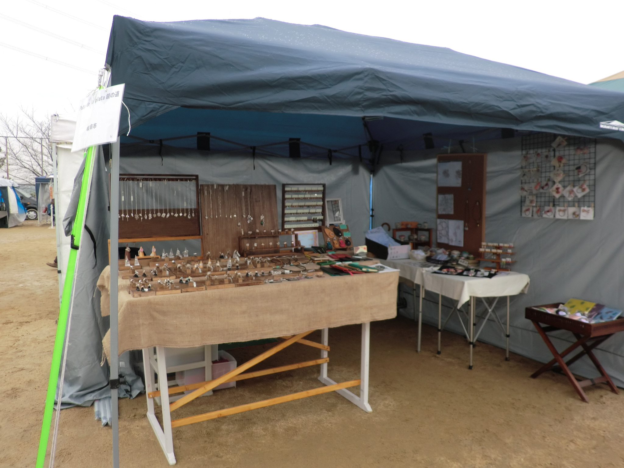 雨は少なかったです。しかし 、晴れ曇り、にわか雨、風 全部勢ぞろいしました。 結果としては寒くて、寒くて、気持ちがどんどん沈んでいきました。 穂の国手づくり市 去年中止になってしまったので今年こそと意気込んで行ったのですが、 屋外のイベント、天候にはかないません。 一日目朝7時に到着して10時開始まで時間はたっぷりのはずが、開始30分前まで ほぼ風対策に終始して展示の小道具やら、作品を並べ始めたのは9時半を過ぎてからに なってしまいました。 後ろに回ると、一本の柱に3本のペグ で風対策の強化を図りました、。 それでも急な突風の時には、 思わずタープの柱を押さえてしまいます。 他の作家さんたちもかなりしっかり風の対策を図っていられたようです。 フードコートのあたりにもお客さんの姿がちらほらとしか見えませんが、 寒いせいか会場全体もお客さんの出足は芳しくありません。 こんな風にお客さんも寄っていただけるように なりました。 二日目 曇りのち晴れの予報が、今日も全ての気象がやっぱり勢ぞろい。 しかしハーフマラソンの当日とあって9時過ぎには駐車場も満杯状態。 そこかしこでランナーの皆さんは柔軟体操をしたりアップを繰り返しています。 出走時間になるとクラフト展会場はまたもとの静かさに戻り、応援の人たちは選手の皆さんが 戻ってくるまで会場をぶらぶらしています。 ひさしぶりのお隣さんシリーズです。 お母さんと娘さんで出展の『 工房ポツリの松井さん 』 恵那からの出展です。 可愛いネコ」たちがいっぱいいます。また他にも素敵な小物 (壁掛けのネコや、おうちの置き物、手書きのトートなど)がいっぱいありました。 天候に左右された今回の出展でしたが嬉しいこともありました。 一つはさるぼぼのリングやペンダントを他の作品にまぜて展示して置いたところ 何もいわなくてもかなりの方がさるぼぼだと解っていただけたことと、その上お買い上げいただけたことです。 また夏に作ったソラマメの指輪が、めでたくお嫁に行きました。 けっこう力が入った作品だっただけに嬉しさもひとしおです。 4月にはまた豊橋で 『 全国アートクラフトマン大集合 』 に参加します。 もっと暖かくなっていると良いなーー!! PR