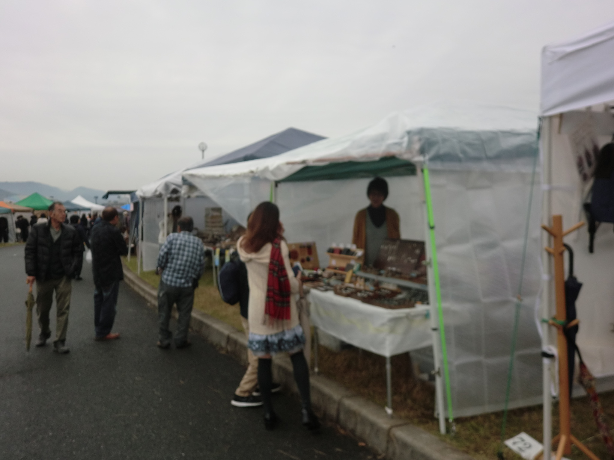 初日の28日(土)は雨模様、しかし風はあまり吹かず、なんとか出店できました。
