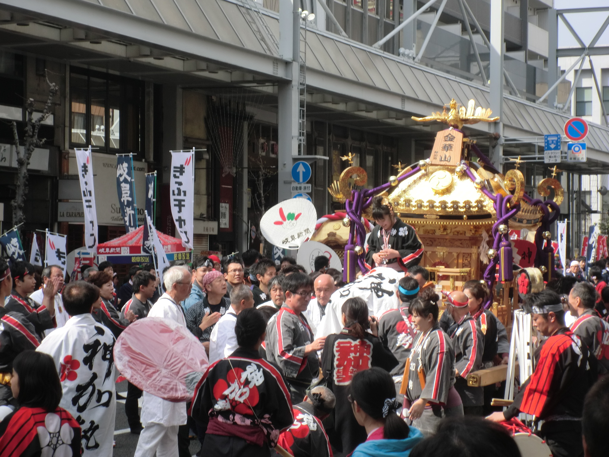 すぐ隣の長良橋通りは春の道三まつりでみこしパレードや