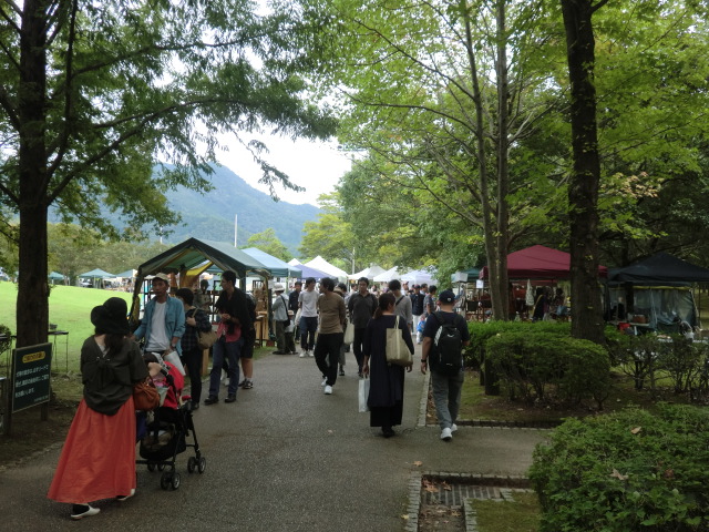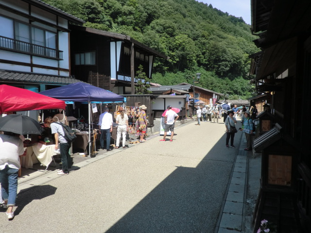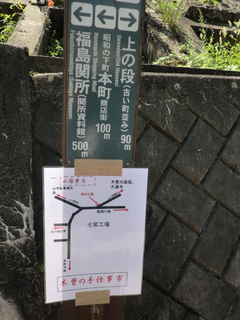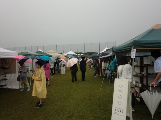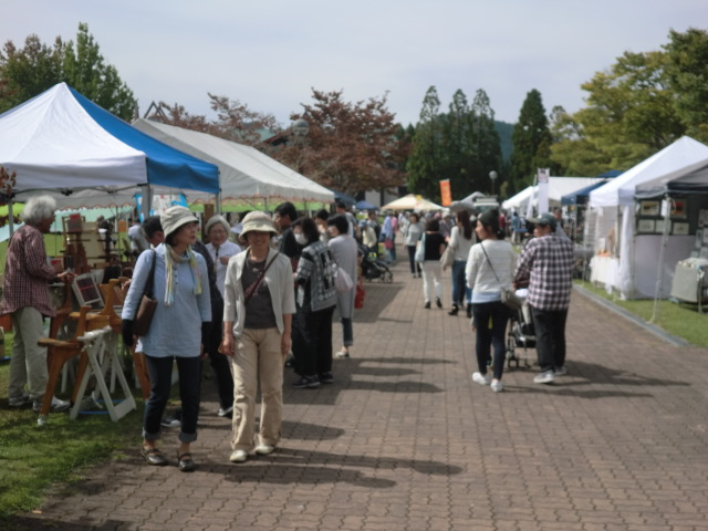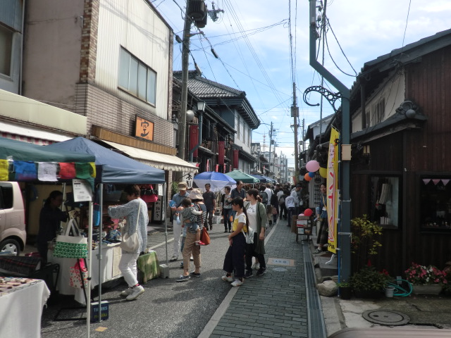 16日(土)/17日(日)の会期中の天気予報は芳しくないとのこと 早めに準備を整えたかったことが理由です。 やはり16日当日は朝から雨、それでも雨風の対策と作品展示を9時までに 済ます事ができました。 お客様は8時を過ぎると入場され始め、9時ころにはかなりのお客様の数が 色々なブースに立ち寄って品物を選んでいらっしゃる姿がありました。 雨は一日中やむことはなかったんですがそれでも多くのお客様で 会場はにぎわっていました。 天気が良かったらもっとゆっくりと見ていただき、遊んでいただけるのにと それが残念でした。 メリーズのブースの前から撮った画像ですが傘ばかりで あまり良く分かりません。 飲食コーナーの方から少し遠めの画像でもあまり変わりませんでした。 残念なことにメリーズは16日の台風情報で翌日の展示をキャンセルすることに しました。 これで2年連続初日だけの展示が続いています。 これだけ熱心なクラフト好きなお客様がいらっしゃるイベントは 少ないので来年こそは二日間しっかりと見ていただく時間が持てたら と思いながら会場を後にしました。 前日搬入の翌日、26日(土)の明け方に雨が少しひどくとても心配でしたが、 店開きの準備を始める頃には 天気も回復し、10:00の開始時間への準備も滞りなくできました。 メリーズは上町エリアでの出店でした。 ブース数も54と広く配置された場所でしたので、お客様もゆっくりとこのエリアの お店をのぞきながら散策されていました。 左は木曽町文化交流センターを背景にしたお店です。 右は開田高原のキャラクターの『 木曽っ子 』も来てくれて子供たちも一緒に 写真をパチリ! この会場は木曽福島駅から上町まで『 上町エリア 』 『 本町エリア 』 『 上の段エリア 』 『 八沢エリア 』とかなり長い距離の間に散開しているので一日目は他の地区へは まったく行けずじまいでした。 2日目は空いた時間を利用して他のエリアを見に行く事ができました。 道路の片側に趣のある建物をバックにしたお店、また蔵の中 にも何軒かのお店が、どこのお店もとってもいい雰囲気でした。 散策の途中にこんな案内標識が現在地から行きたい方向がとても分かりやすく 表示されていました。 そして古来からの由来や街並みの案内表示にも町に対する愛着がかんじられます。 町並みをめぐるとこんな建物や、狭い路地の佇まいが多く見られます。 岐阜の高山や古川でもこんな風景をよく目にすることがあり すごく懐かしく路地の真ん中あたりでは昔にタイムスリップしたみたいで 子供のころに戻ったみたいでした。 色々のエリアの一部だけしか見れませんでしたがこれほど多くの場所に 160以上の作家さんをきちんと案内し、配置するだけでも大変なことですし、 それに付随する駐車場の手配、など雑務も多かったと思います。 今回初めて参加させていただきましたがスタッフの方たちの行き届いた 指示、また心遣いにとても感謝しています。 スタッフの皆様『木曽の手仕事市』大変お疲れ様でした。 来年もぜひ参加できたらという思いを抱いて帰路につきました。
