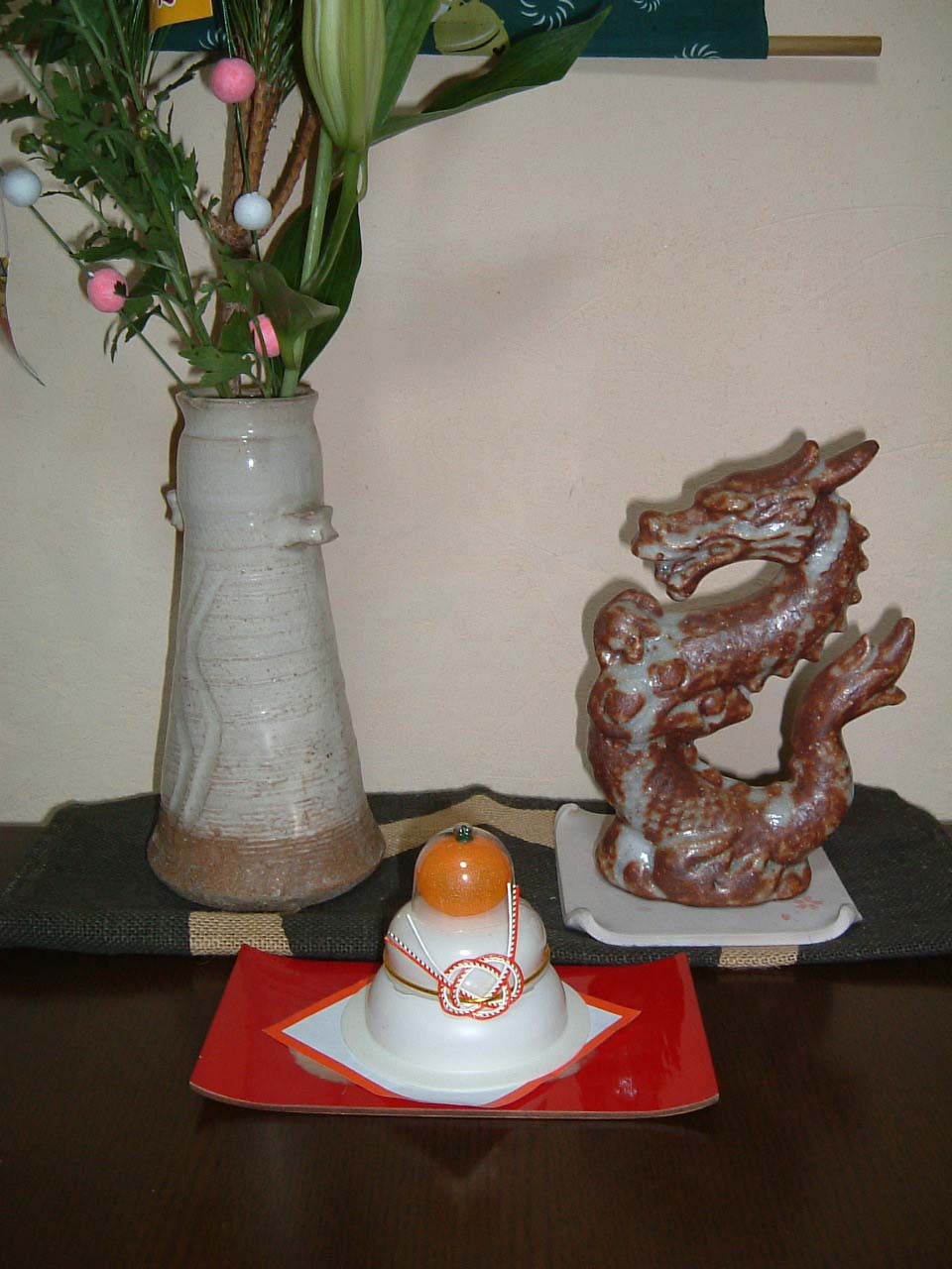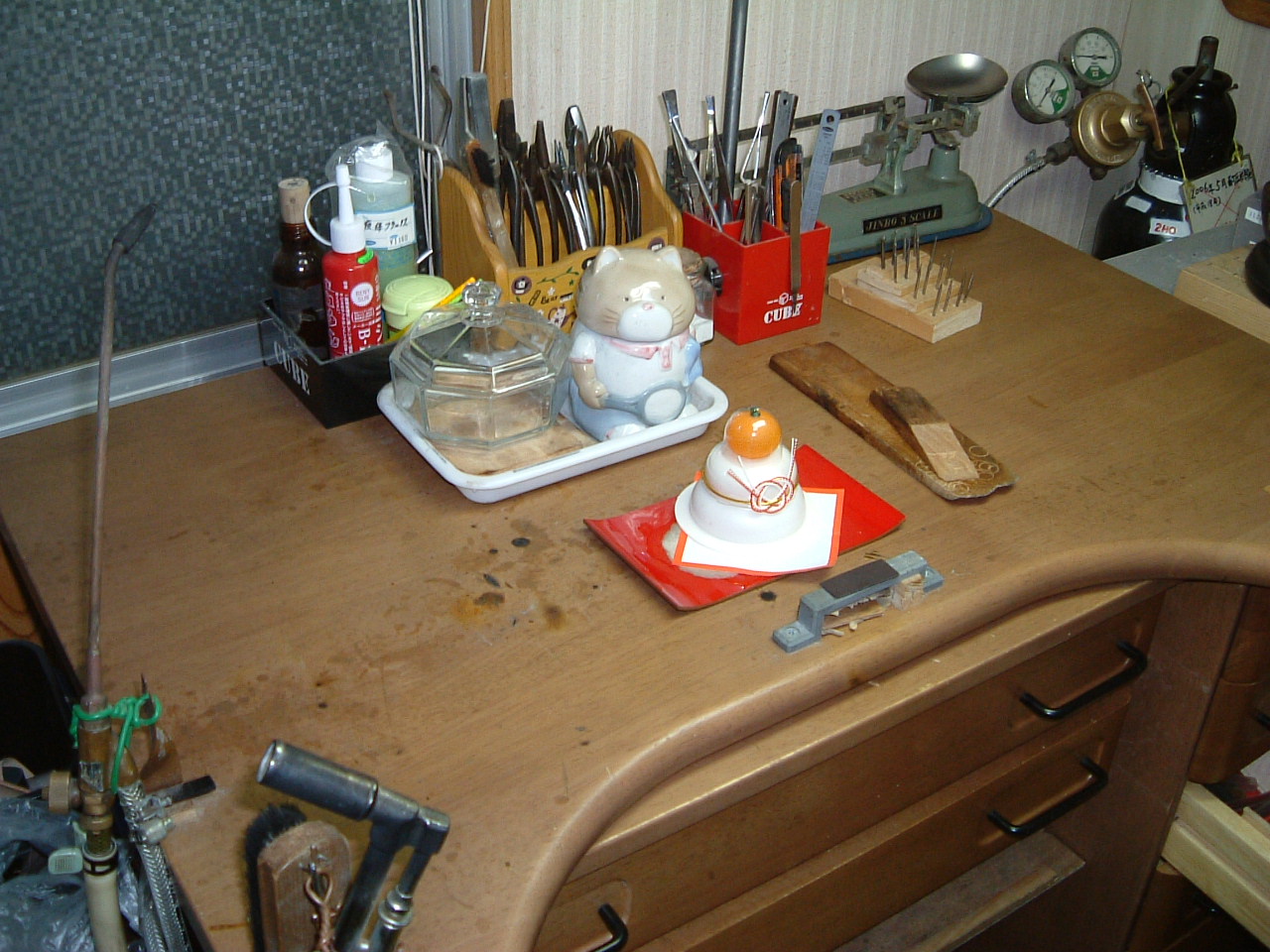 今年最後の作品は、革のキーホルダーです。 イガデハクで頼まれたもので、今年中に一応のカタチをまとめておこうと思い、 何とか、まとめてみました。 革の作品については2012年はカラー展開を目指していこうと考えています。 ブックカバーのように色々な色使いをした作品をと思って、このキーホルダも こんな色を使ってみました。これで仕事納めになりました。 来年の準備 まず一年、一緒にがんばった加工机をきれいに掃除をし、お正月を迎える鏡餅 を飾りました。 ね、きれいに片付いているでしょう。 来年もよろしくお願いします。 そして家の飾りつけも完了、こんな感じに飾ってみました 来年は辰年、運気を得て昇竜と言われるほどにがんばりたいと思います。 今年一年、各地のクラフト展でおいで頂いたお客様、お買い上げいただいたお客様 本当にありがとうございました。 来年は皆様に、今年と違った作品、もっと素晴らしい作品をお見せできるよう いっそうがんばります。 この場をかりてお礼申し上げます。ありがとうございました。 PR ● コメントフォーム |