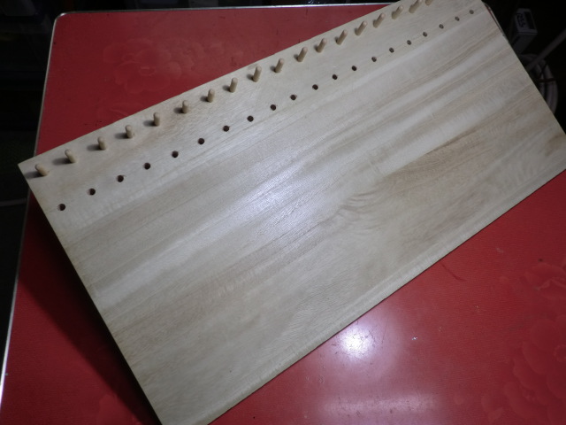 両方とも選考落ちの結果に終わったみたいです。 8月、9月のイベントだったのですがとても残念! ! そこで急きょ8月は京都のイベント(VIVREものづくりマルシェ)に 行こうと考えました。 ここは募集が6/16~なので決定ではないのですが 去年ワンパック方式(荷物を一つのカバンに詰め手持ちで運ぶ)で電車で 参加したところです。今回も同様の方法を取るつもりです。 そこで展示小物のネック掛けが車で参加するときと同じもので大きい為 少し小さく色合いも変えました。 こんな風に出来上がりました。 以前のサイズは80×30センチで19本ネックレスが掛けられました。 今回の物は50×25センチで20本ネックレスが掛けられるよう改良しました。 また色合いも木地の肌のままにして、 汚れ防止に無色のニスで仕上げました。 今までの色、ウオールナットカラーだと明るい所では銀色も光るのですが 屋内では少し目立たなくなる為バックの色合いを明るく変えてみました。 これで今年初のイベントを頑張ります。