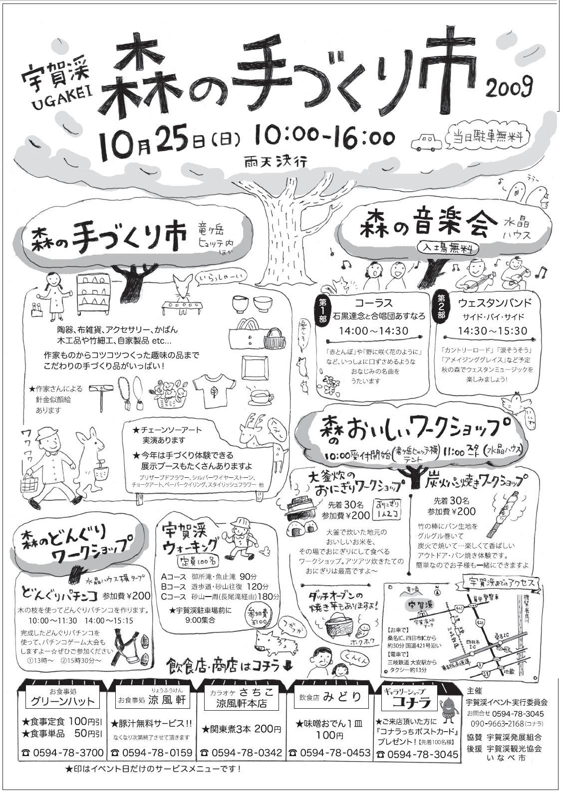 × [PR]上記の広告は3ヶ月以上新規記事投稿のないブログに表示されています。新しい記事を書く事で広告が消えます。 出展いたします。こんばんは広報担当です。 実は昨日おとついと、鳥羽のイベントにも参加していたのですが、 すっかりすっかりここで告知するのを忘れておりました…!!!申し訳ございません。 なので、今週末の宇賀渓はいまのうちに!! 宇賀渓 森の手作り市 2010年10月24日(日) AM10寺からPM4時まで 場所:竜ヶ岳ヒュッテ他(雨天変更あり) だそうです。公式サイトは…ないのかな、私見つけられませんでした… ●宇賀系までのアクセス 【お車で】 桑名IC、四日市ICかた約30分国道421号沿い 【電車で】 三岐鉄道大安駅からタクシー約13分 だそうです。あ!ちらしみつけましたので、画像拝借して、貼り付けて起きます… お借り元はコチラ どうやら、サムネが作成できないそうなので、よろしければリンク先で詳しくみてくださいませ。 鳥羽は、銀担当一人での出展でしたが、今回は広報担当も行きます。 皆様にお会いできるの、たのしみにしておりまーす。 PR