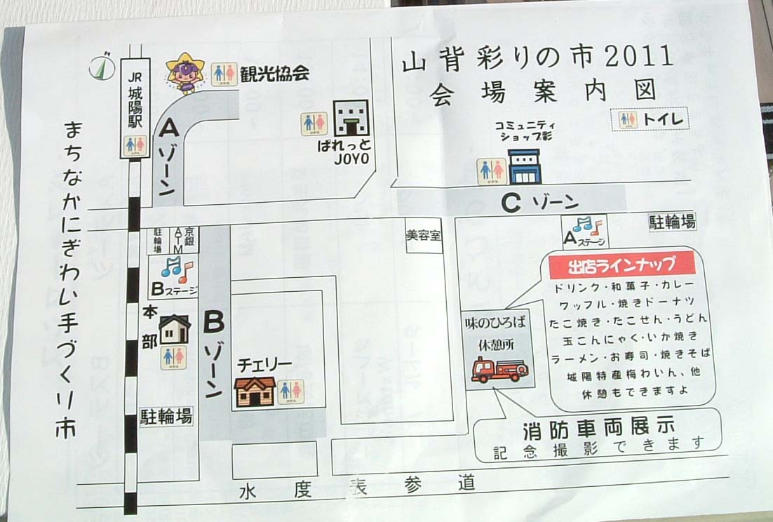 × [PR]上記の広告は3ヶ月以上新規記事投稿のないブログに表示されています。新しい記事を書く事で広告が消えます。 11月13日には京都府城陽市の 山背彩りの市2011にいってきました。 初めての関西圏への出展です。時間に余裕を持って朝4時半に家を出て 高速で現地へ、1時間以上早くついた為近くのコンビに駐車場で7時50分 まで休憩してからJR城陽駅近くの会場に到着。 クラフト展の場所はこんな風にレイアウトされていました。 ≪ 銀の道 ≫のブースは駅の出口の直ぐ隣りでした。 10時のクラフト展開始時刻には暖かいいいお天気で絶好の日和になっていました。 お客様の出足も好調でした。 またこんないいことも、 駅の出口で 京都府茶協同組合から宇治茶のキャンペーンで お茶を配っていた 宇治茶レディーの女の子に頼んで 銀の道の展示スペース前で モデルになっていただきました。 二人ともとってもかわいらしいお嬢さん で気軽にポーズをとってくれました。 手づくり作品ブースはA,B,Cの3つのゾーンに配置されている為 少しまとまりに欠ける感じがしました。 スペースの関係で仕方がないかもしれませんが。 午後には雨がぱらついたため、人出も少し伸び悩んだ みたいです。 初めての京都進出と意気込んでいただけに・・・・・・・・残念!! PR ● コメントフォーム |