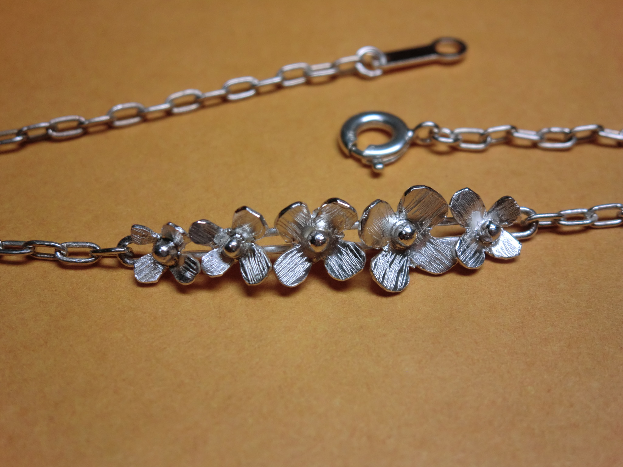 フェアは14日(日)と15日(月・祝)の予定で行われますが、 やはり地元の利、会場まで家から車で10分程度の距離のため 事前に搬入を行い、当日の朝は作品のディスプレイに専念する予定でいます。 今まで前日搬入をしたのは、岐阜以外は今年のヘムスロイド だけというぐらい数は少ないです。 遠くに行く場合、前日搬入をすると丸一日つぶれてしまうので やはり早起きをして当日搬入ということがほとんどです。 今日も一点新作を作りました。 銀のブレスレットですが昨日ご紹介したピアスと同じ 花のデザインです。 明日はブログを書く時間もないので、GIFUクラフトフェアの 案内もここでさせていただきます。 GIFUクラフトフェア 会場 アクティブG、JR岐阜駅、シティ・タワー43 開催日 9月14日(日)/15日(月 祝) 時間 10:00~19:00 * 会場は屋内なので雨でもやっています なお メリーズ(銀の道)の展示ブースは NO40 でアクティブG会場の三階の吹き抜けの外周です。 岐阜の皆様のお越しをお待ち致しております。 PR ● コメントフォーム |