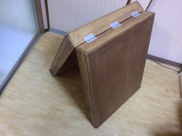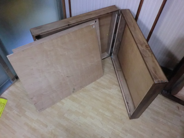 二つの箱が連結されました。前に立てかけてあるベニヤ版は内蓋です。