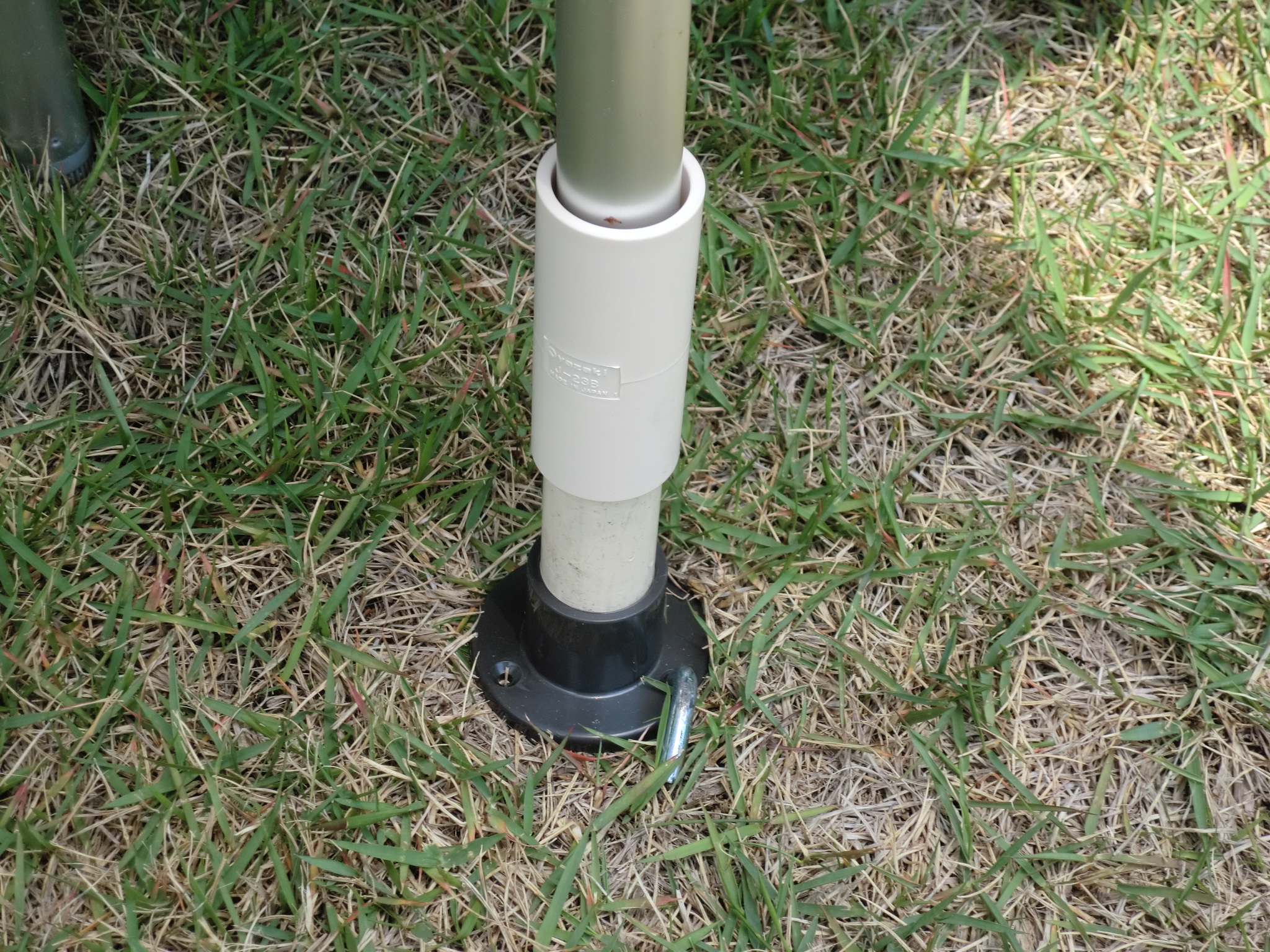 重いこともあったので荷物を軽くするためアウトドアー用の折り畳みテーブルを使い、 上に段差を乗せる形に変えてみました。 しかし以前の机の高さが90センチあったため、現在使用の70センチの高さの机では どうも使い勝手が悪いんです。 そこで少し足を継ぎ足すことにしました。 一気に20センチのかさ上げでは安定しにくくなる為、10センチだけ高くしてみました。 足の部分はホームセンターでも販売している、イレクターという組立できる パイプとアクセサリー部品を使い加工してみました。 これは意外に簡単にでき、かつ軽く出来上がりました。 パイプに組立テーブルの脚を差し込むだけです。 足の径が25m/mで、継ぎ手の内径が27m/mのため パイプ径が若干異なるのでピタッとはめ込みが決まる と言う訳にはいきませんが、足を安定させるため土に接する円盤状の物 を二か所ペグで固定します。 これだけで安定はずっと良くなります。 PR ● コメントフォーム |