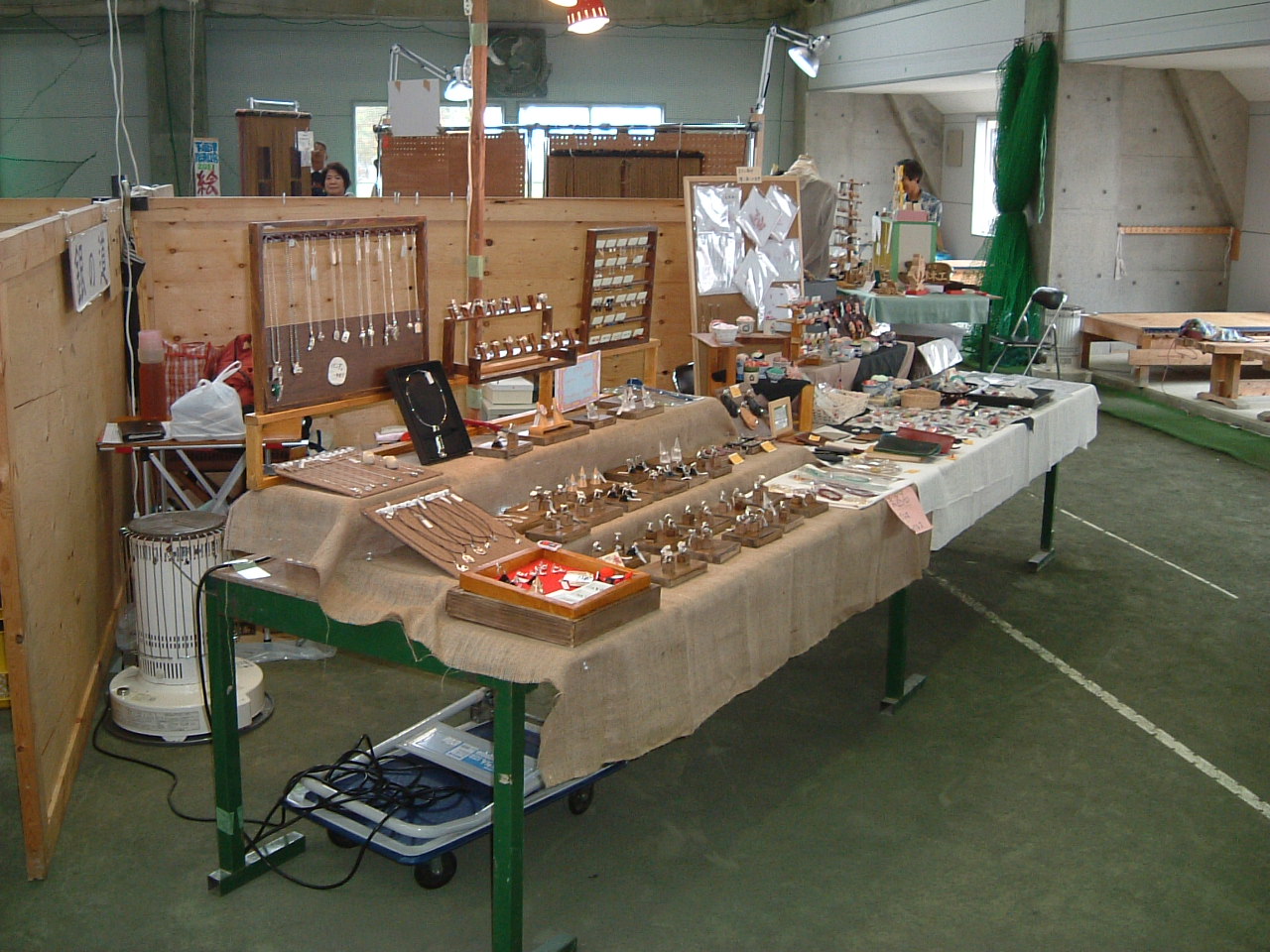 秋の清見クラフト展一日目は雨模様でした。 でも今回は屋根のある清見高齢者運動広場(清見ドーム) なので、雨が降ろうが、風が吹こうが、ゆっくり見ていただける 予定が、雨の所為で人出は伸びず少々ガックリ。 銀の道のブースはこんな感じです。 今回は清見クラフト協会さんが用意してくれた 展示台を使っています。 午後三時ごろの会場内の様子です。 参加者同士がお互いに訪問するため 動き回ってるだけです。 二日目 九時からのオープンでしたがそれ以前から これだけの人出になっていました。 メインステージでは船山太鼓のみなさんの 演奏などが行われました。 一日目と同じアングルで撮った写真です。 これだけ、お客さんの数が違います。 反対のサイドから撮った写真も この混みようです。 今回はお隣さん紹介に変えて、5月の清見クラフト展で知り合いになった 小さいお店KinnTonn の北畑さんの紹介です。 こんなかわいらしいものが一杯です。体験のワークショップもされているので いつもちいさな女の子と、お母さん達で賑わっていました。 今回も ≪銀の道≫ のブースにお立ち寄りいただいたお客様 またお買い求めいただいたお客様どうもありがとうございました。 ならびに、今回のクラフト展の開催にあたり運営等でお世話していただいた 清見クラフト協会の皆様、本当にお疲れ様でした。 またクラフトの仲間としてお世話頂き心よりお礼申し上げます。 ありがとうございました。 来年お会いできることを楽しみにしております。 PR