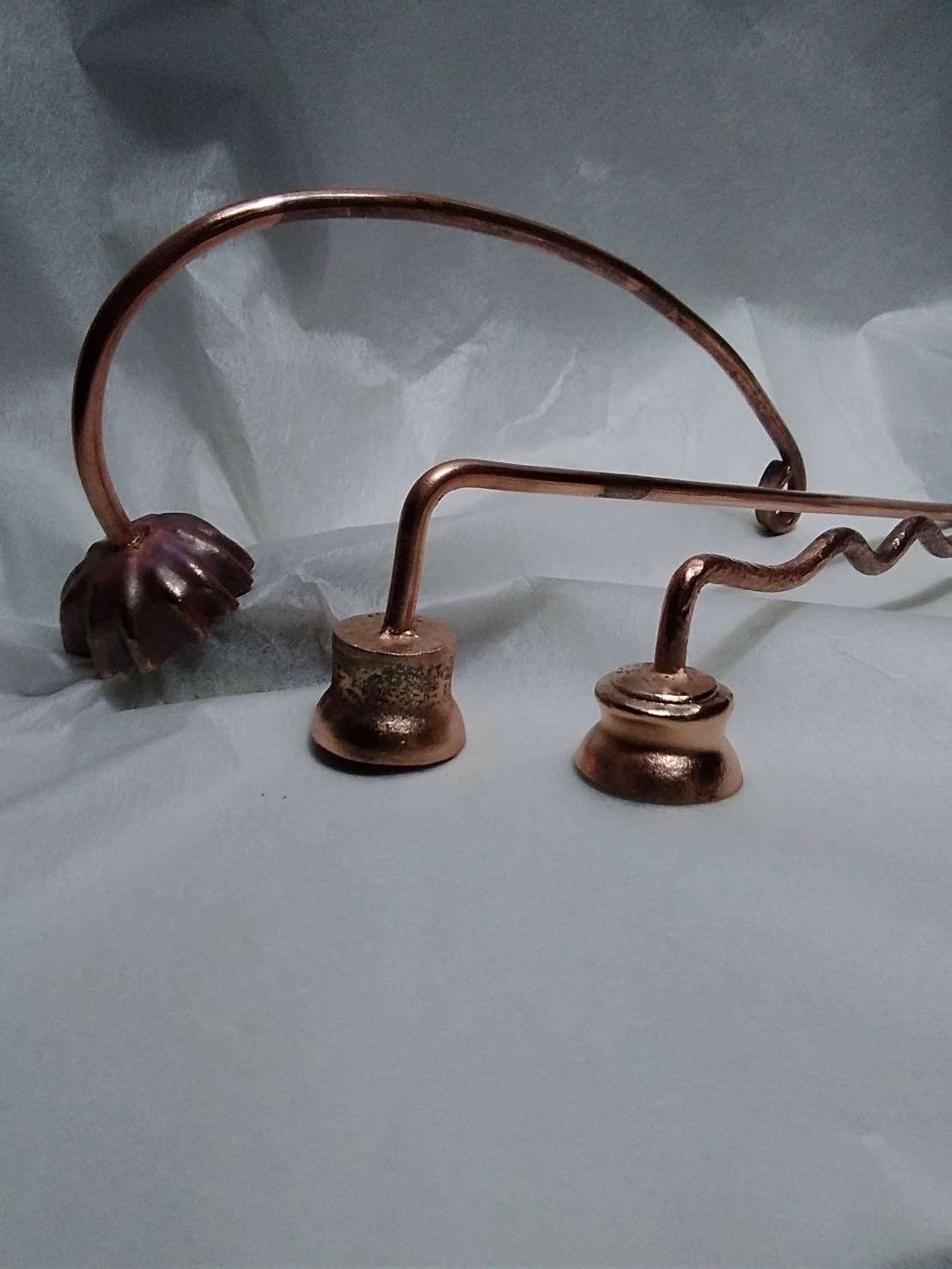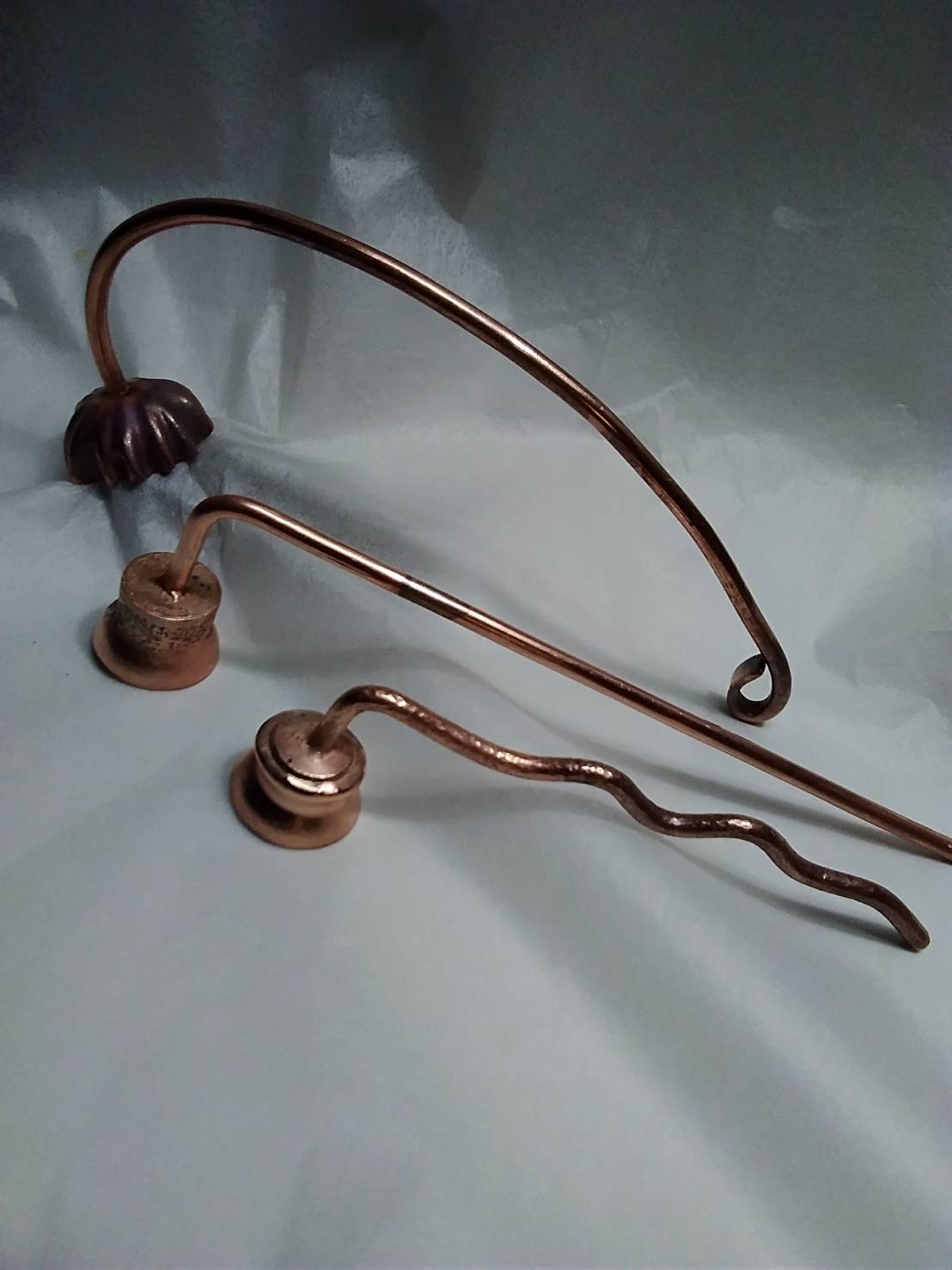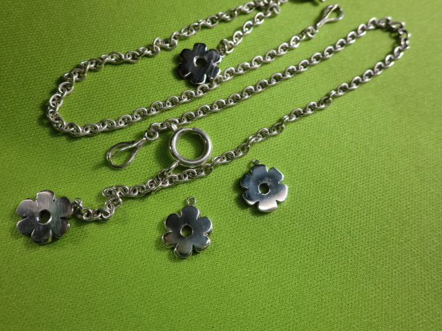 作るもの全て完成品にせず仕上げ前の状態で 作り置きにしてあります。 ブログに書くネタが日常生活のことばかりでは飽きてきますよね❓ そこで少しづつ作り置きしているものの中から ご紹介させていただこうと思います。 まだ完成前ですが・・・・ お盆の時に考えたロウソク消しです。 もう一般に商品化もされているものですが少しアレンジを 変えてクラフトっぽさを出しました。 素材は全て銅です。 仏壇の前でロウソクを消す時の立ち位置によって 三種類の長さにしてみました。 次のは新作ではなく少し手直しを加えたものです。 時計と一緒につけるブレスレットですが、 飾りの部分が小さくて目立たなかったので 花をモチーフに大きくしてみました。 上の画像は女性用です。 男性用のサイズにはまた違うデザインを考えています。 [ 次のページ>> ] |